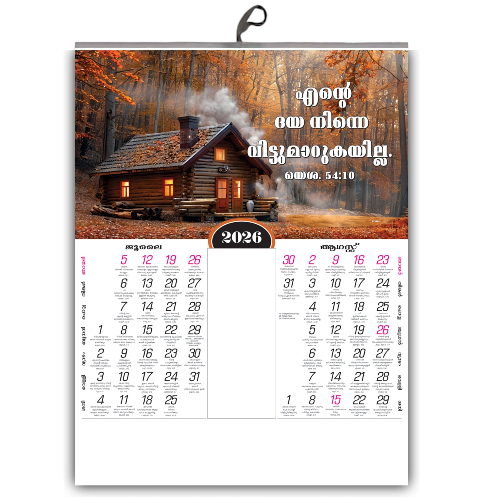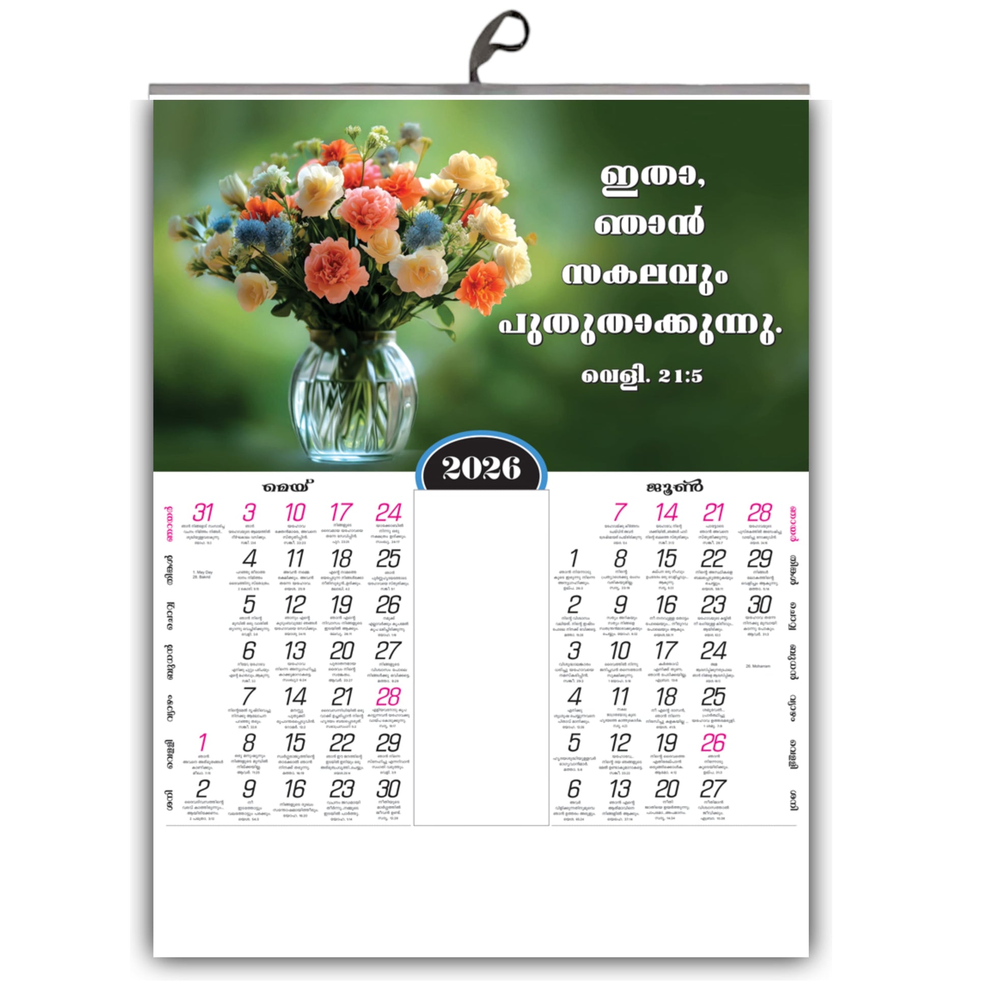 Experience the beauty of 2026 with this exquisitely designed Malayalam calendar, featuring stunning high-resolution images of vibrant flowers and graceful birds. Each of the 6 pages showcases captivating nature photography paired with inspirational Malayalam promise words (വാഗ്ദാനങ്ങൾ) that bring daily motivation and positive energy to your living or workspace. Printed on premium Real Art Glossy Paper with 100 GSM thickness, this calendar delivers exceptional color clarity and durability. Measuring 20 inches in length and 15 inches in width, it's perfectly sized for wall display in homes, offices, shops, or prayer rooms. The glossy finish enhances the visual appeal of the floral patterns and bird imagery, creating an elegant piece of functional art. This calendar serves as a perfect blend of traditional values and modern aesthetics, making it an ideal gift for festivals, housewarmings, or corporate occasions while helping you stay connected with important dates, festivals, and cultural events throughout the year.