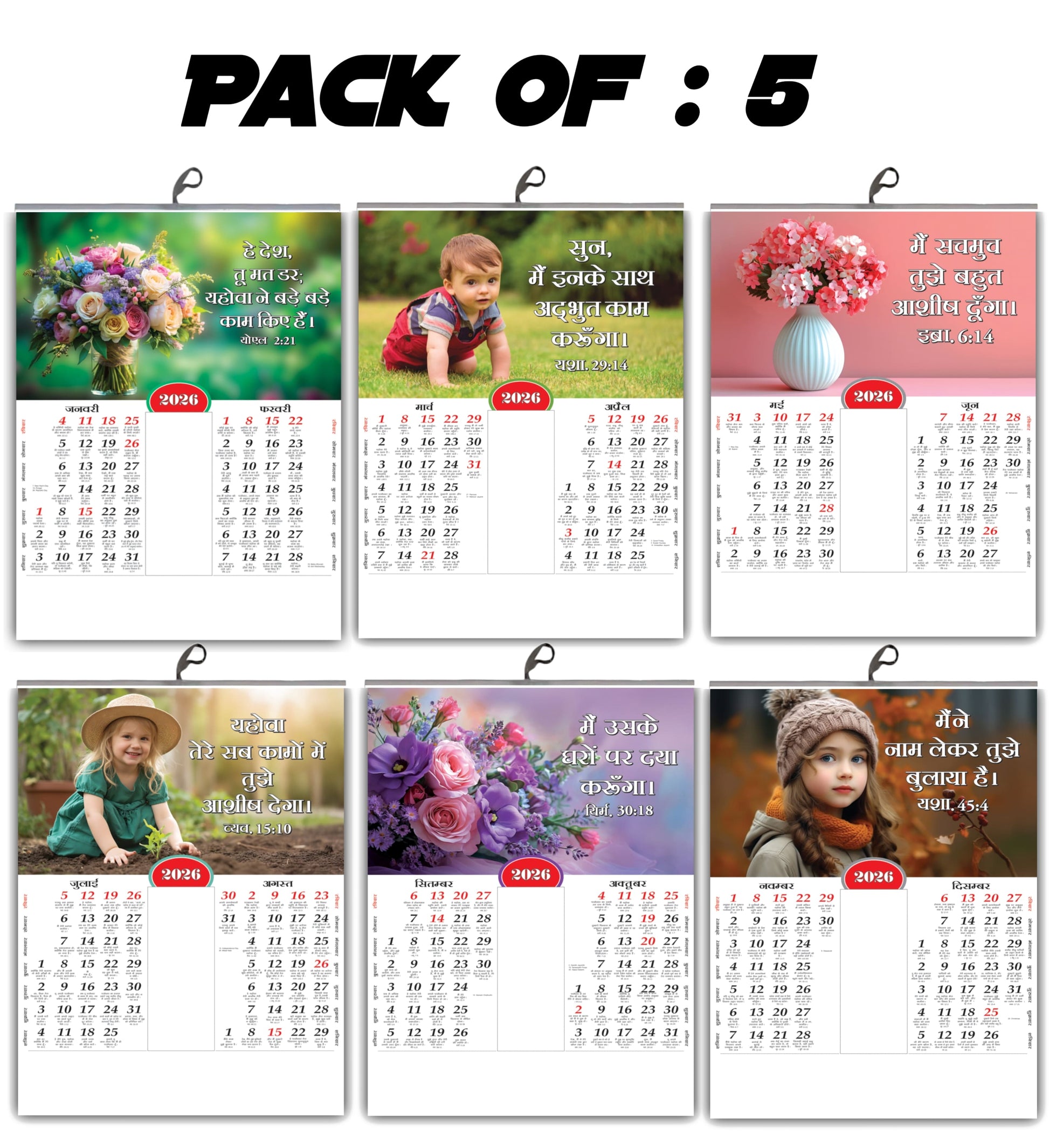 Make a grand and inspirational statement in your home or office with our 2026 Jumbo Hindi Calendar. This magnificent calendar showcases breathtaking, high-resolution images of vibrant flowers and graceful birds, each beautifully complemented by uplifting Hindi promise words (प्रेरक वचन) that offer daily motivation and spiritual solace.