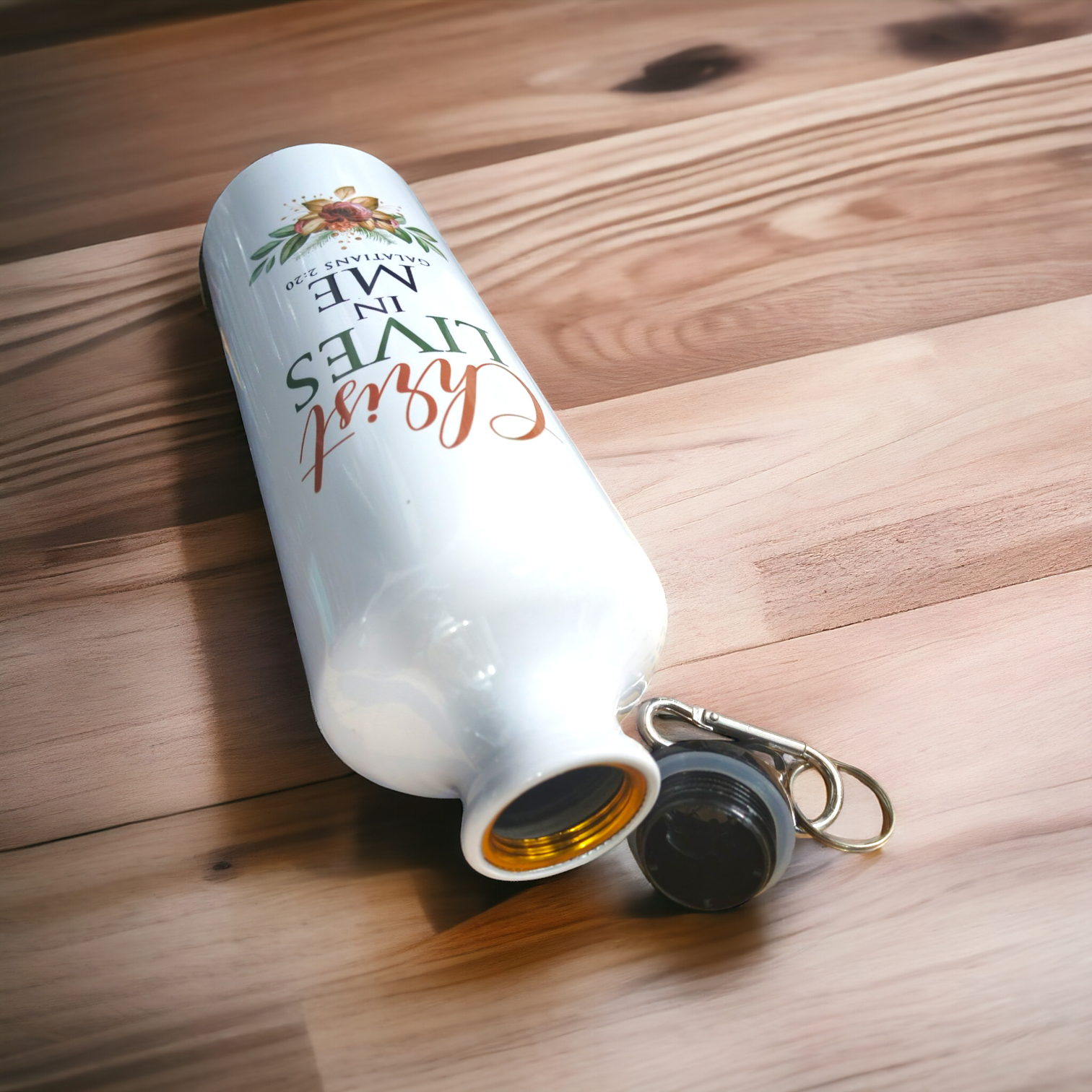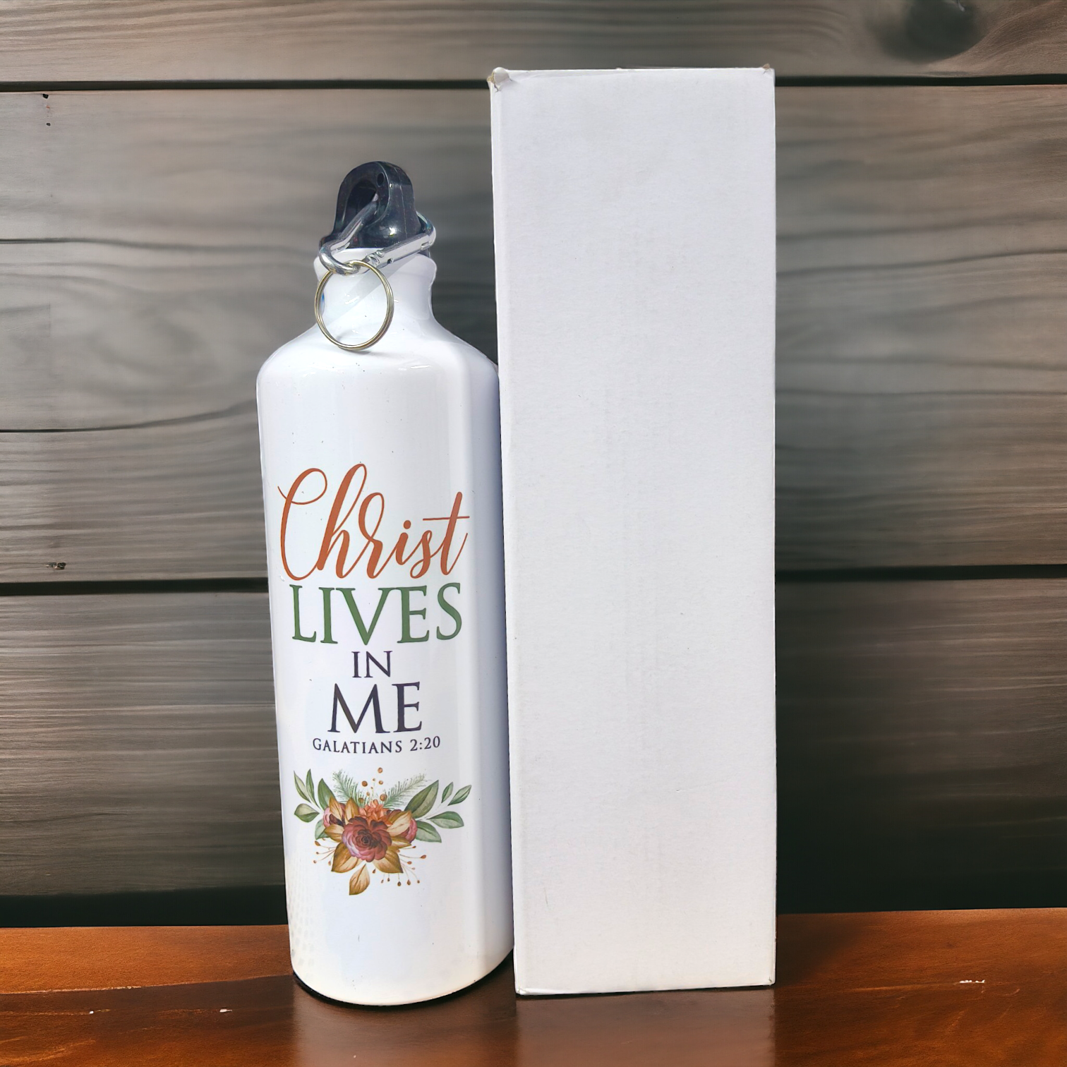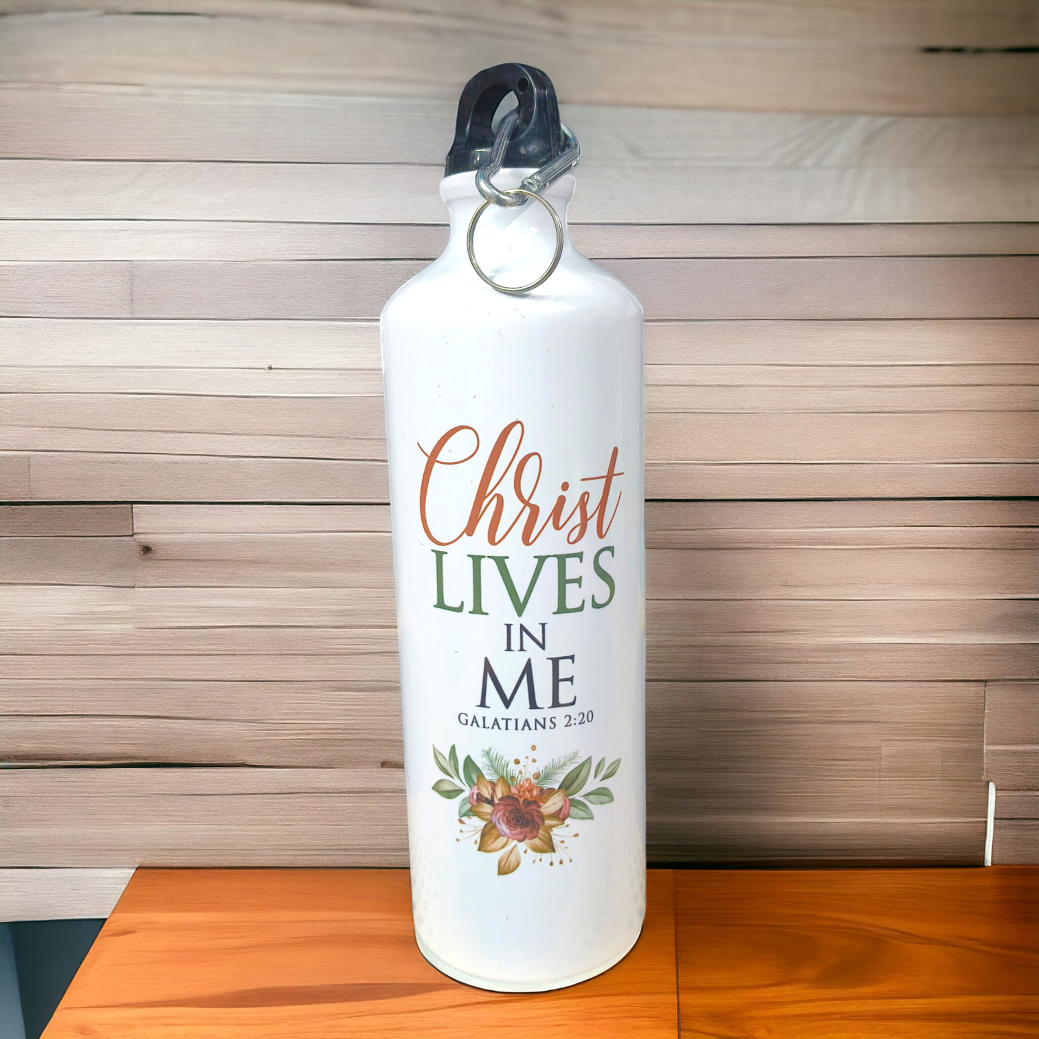 The Aluminum Sports Bottle | Bible Verses Printed (Galatians 2:20) | 700ml | White Blank | Travel Sports Water Bottles is a functional and spiritually uplifting product designed for active individuals. Below are the key points and description: