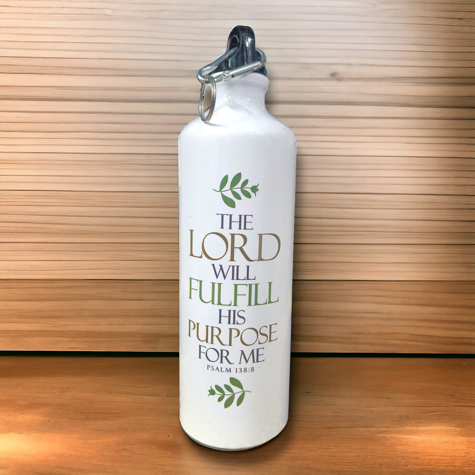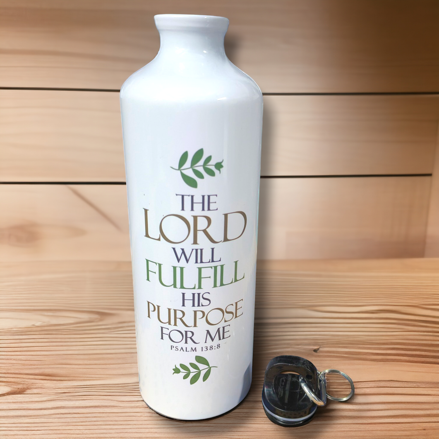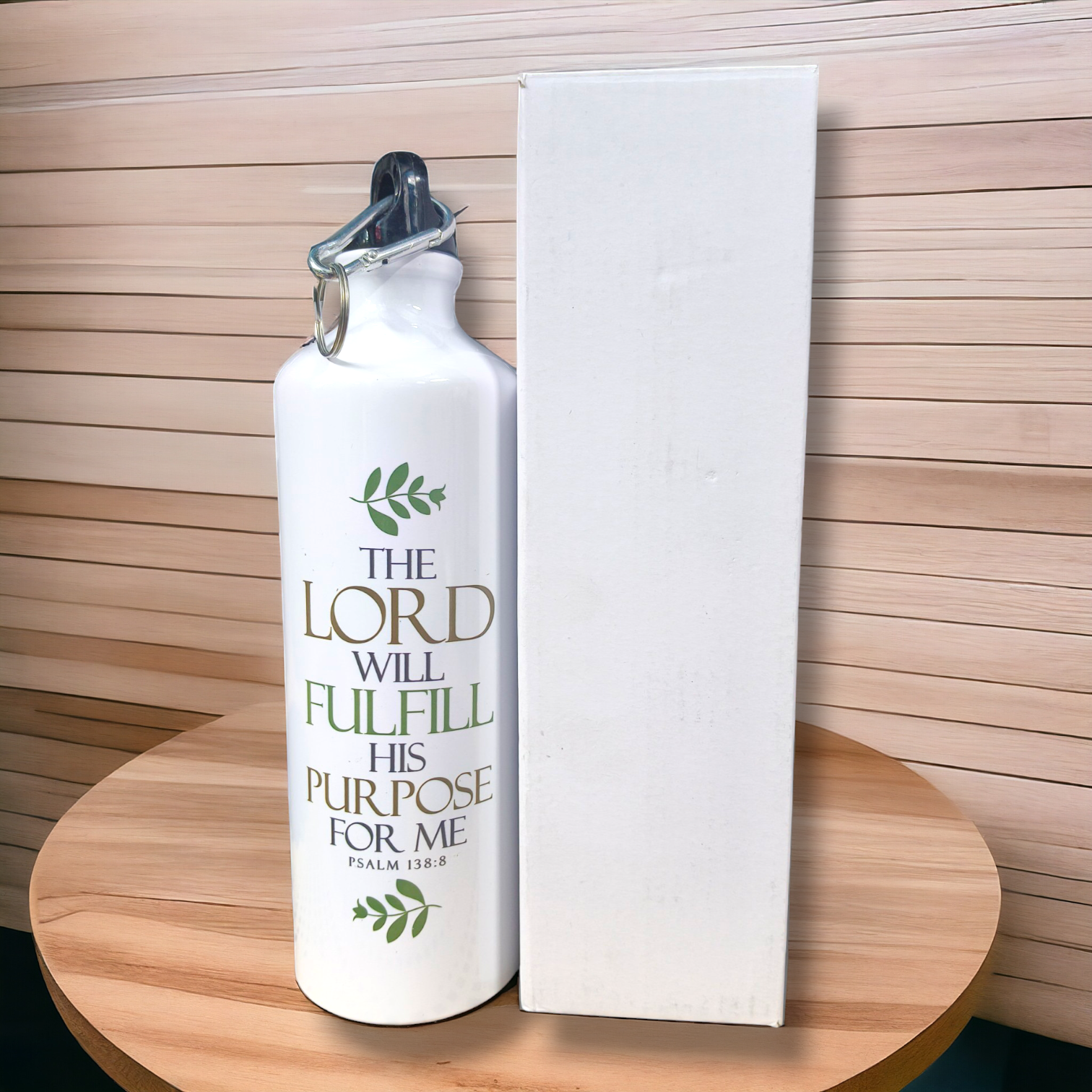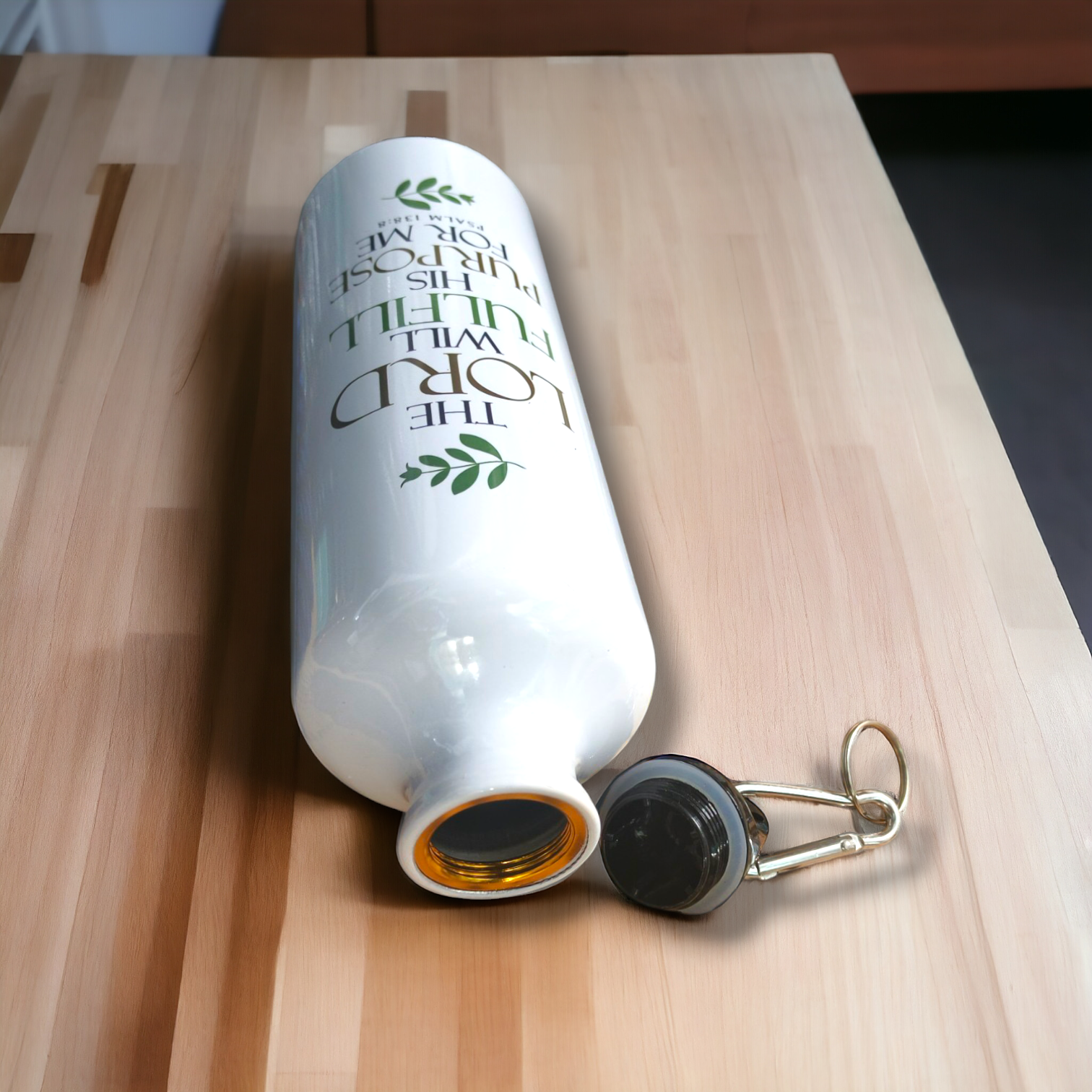The Aluminum Sports Bottle | Bible Verses Printed (Psalm 138:8) | 700ml | White Blank | Travel Sports Water Bottles is a practical and spiritually uplifting product designed for active individuals. Below are the key points and description: