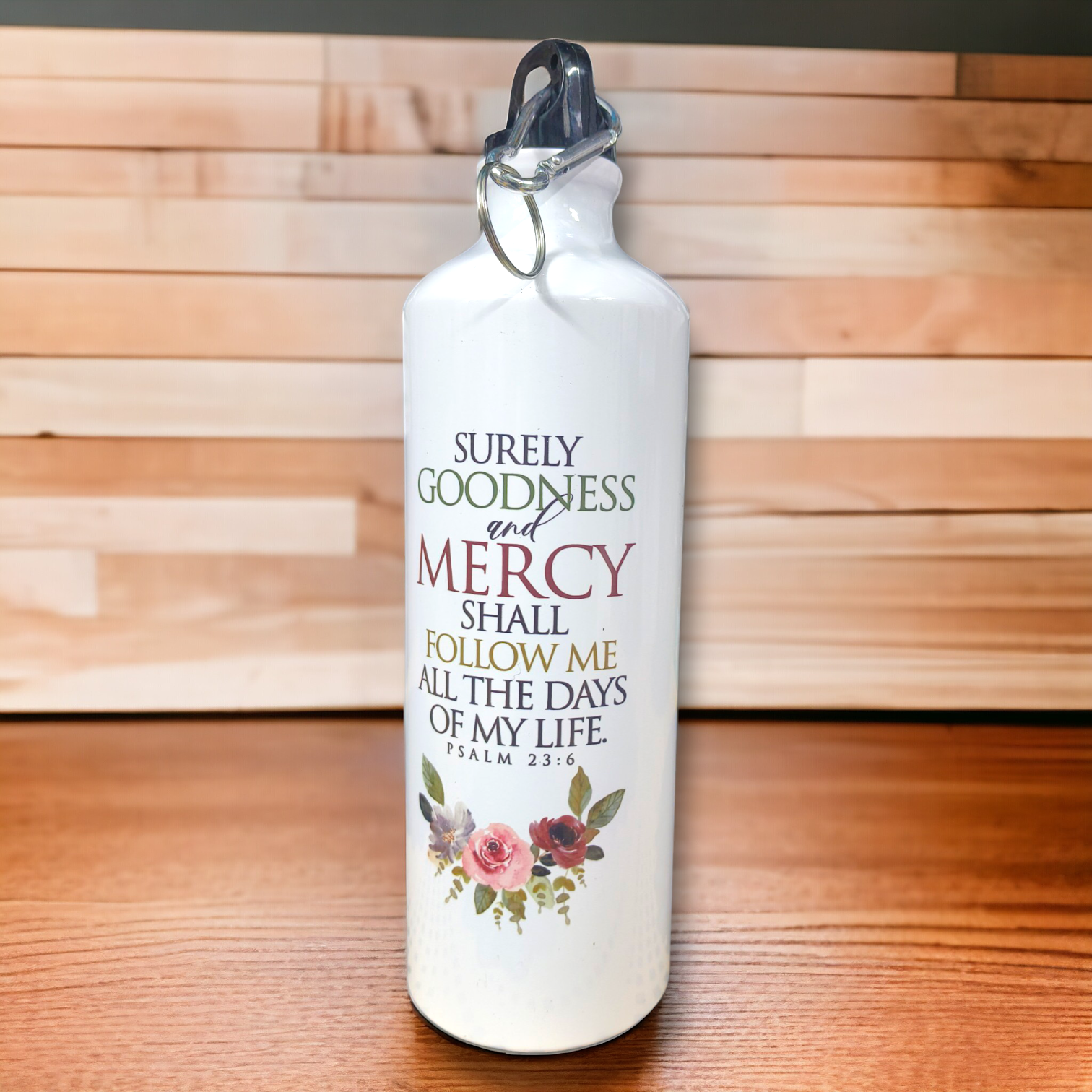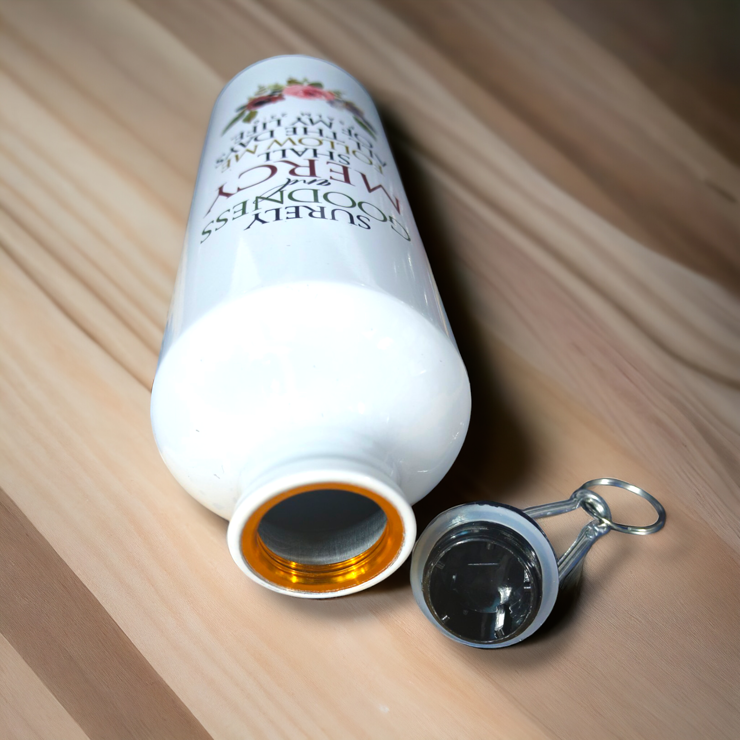The Aluminum Sports Bottle | Bible Verses Printed (Psalm 23:6) | 700ml | White Blank | Travel Sports Water Bottles is a versatile and inspirational product designed to keep you hydrated and motivated. Made from high-quality aluminum, this bottle is both durable and lightweight, making it perfect for sports, travel, and daily use.