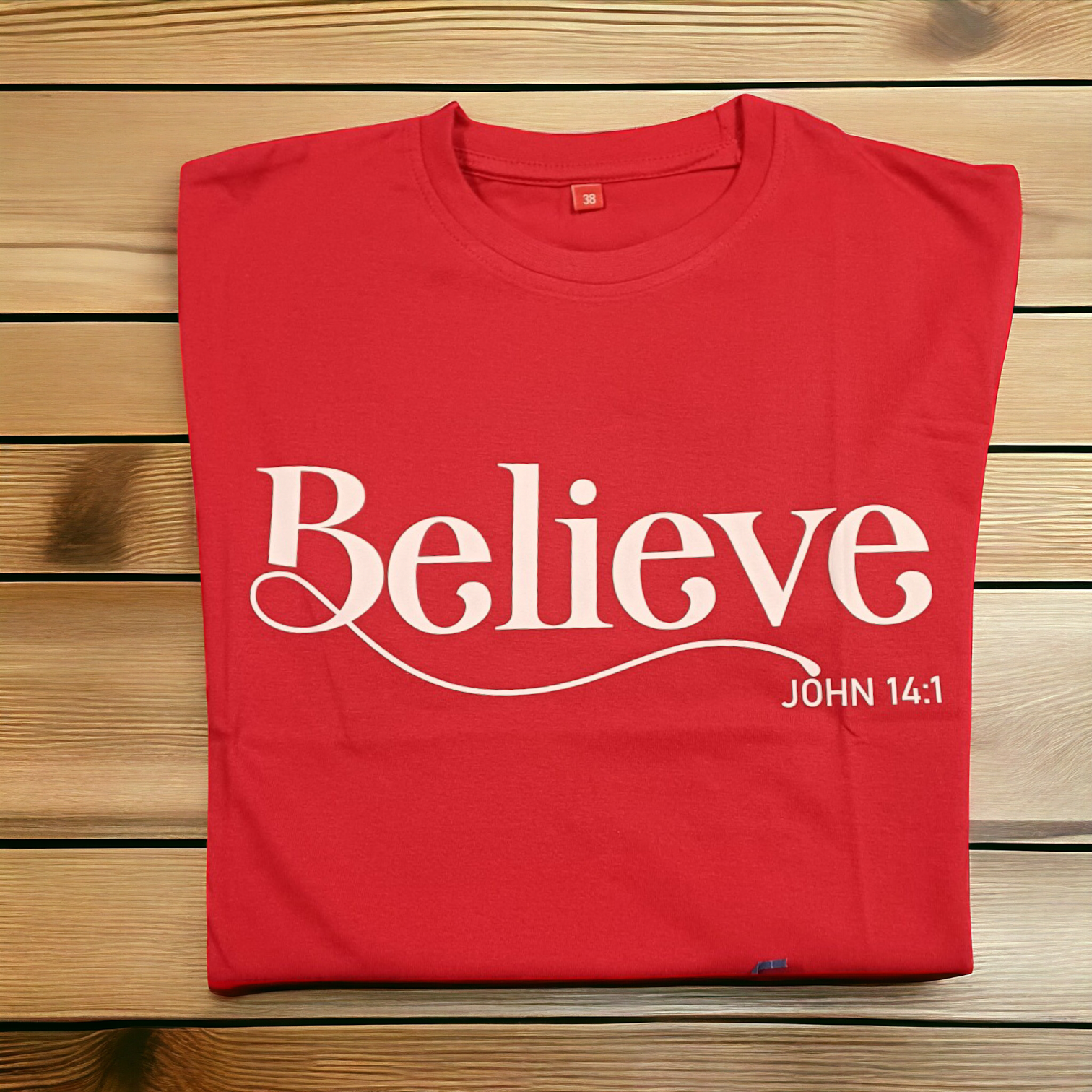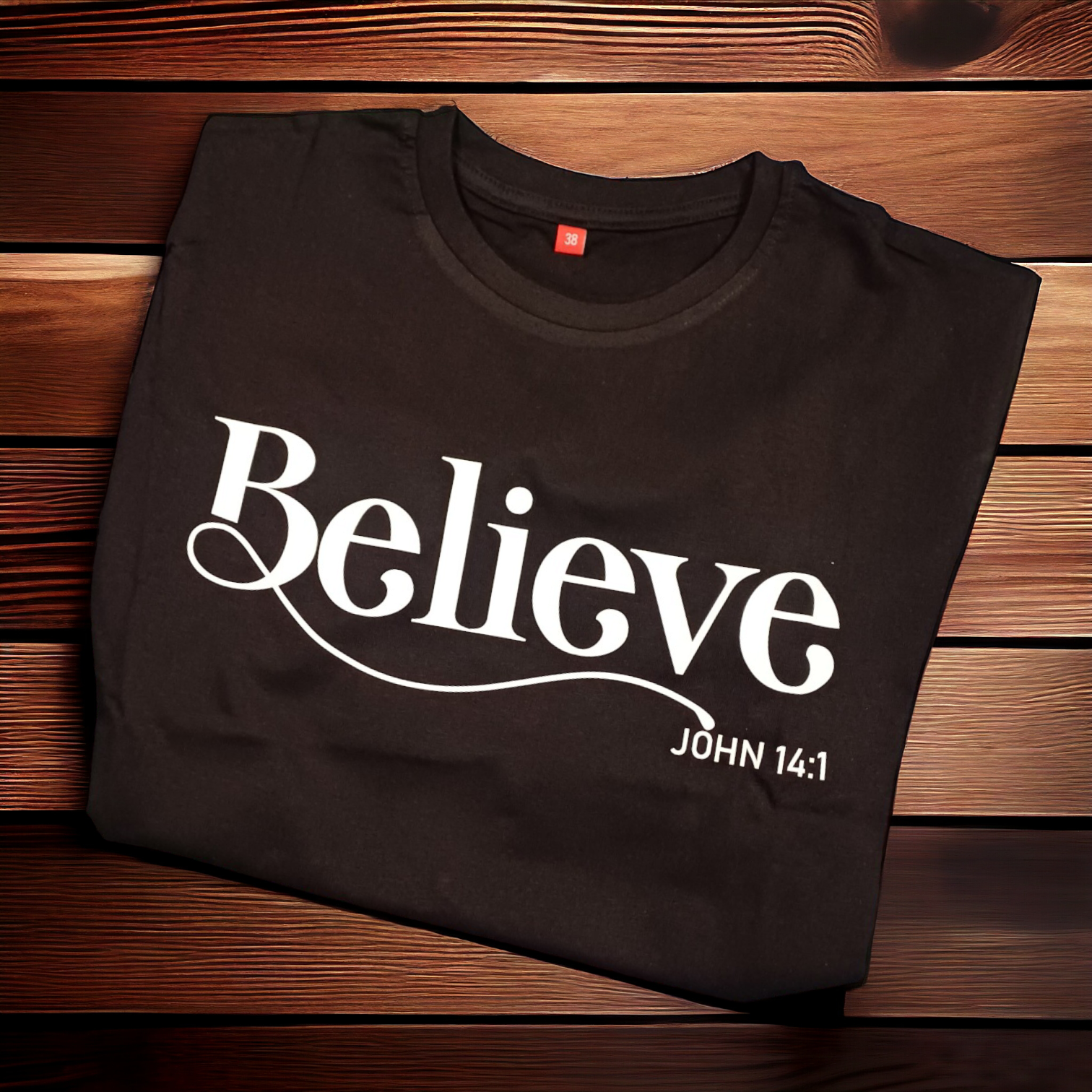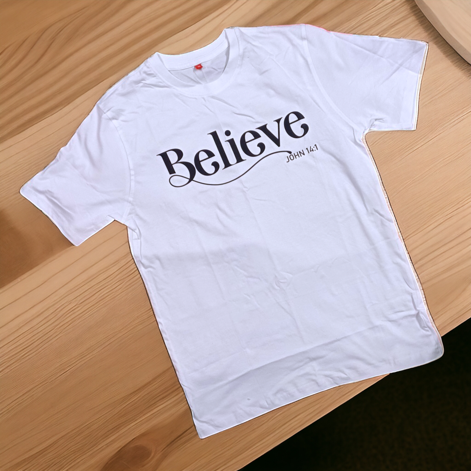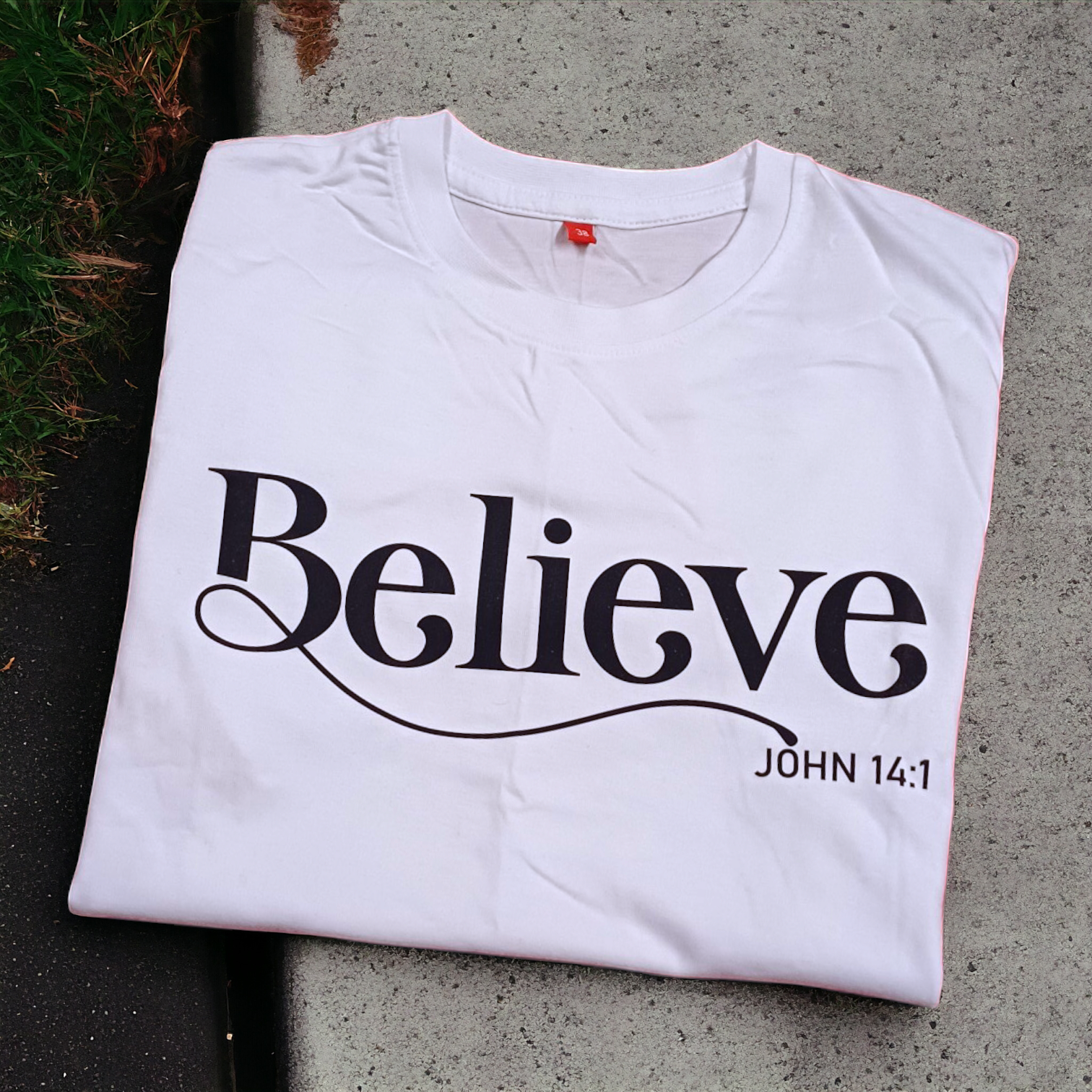 Find peace and strength with this Bible Verse Printed T-Shirt, featuring the reassuring scripture John 14:1: "Do not let your hearts be troubled. You believe in God; believe also in me." This verse serves as a powerful reminder to trust in God’s plan and remain faithful, making it a perfect choice for everyday wear and spiritual encouragement.