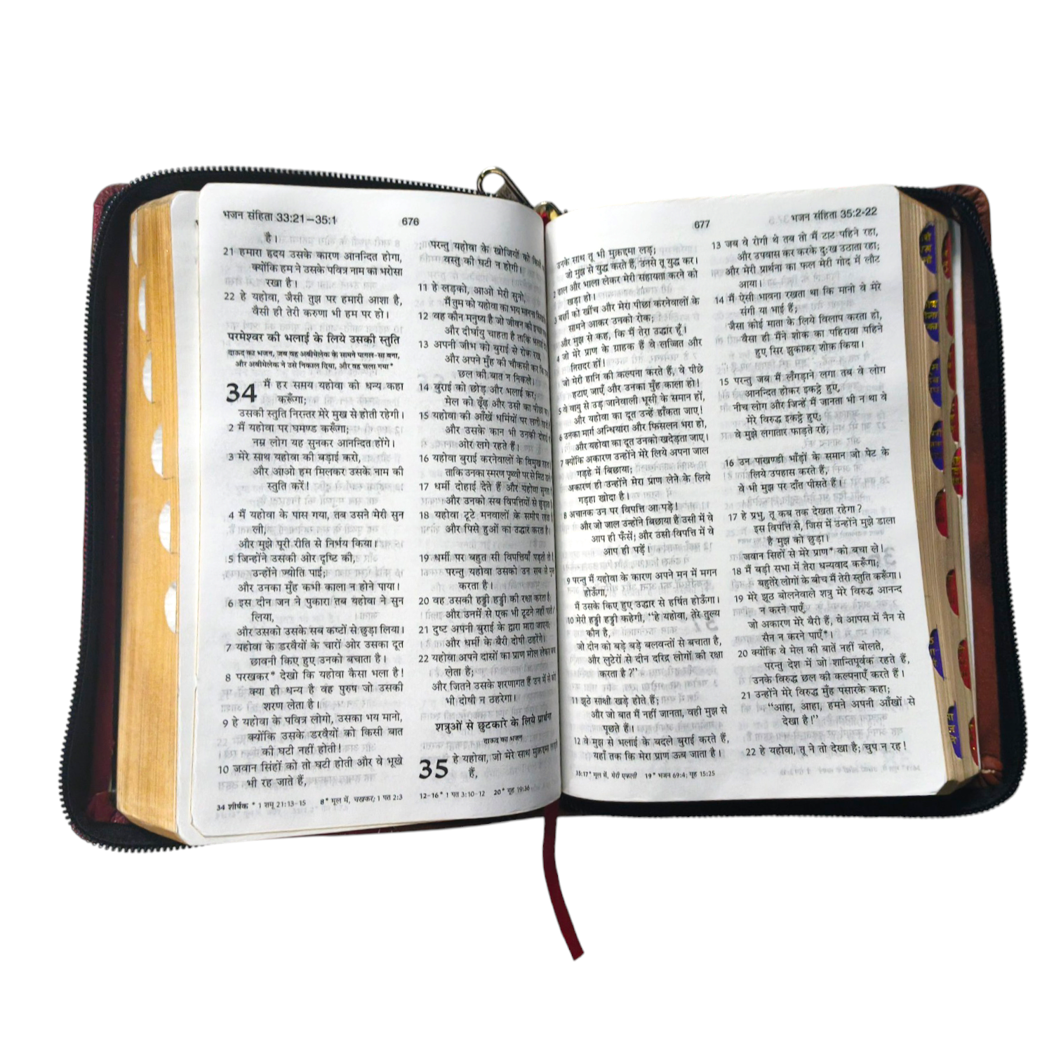 The Compact Hindi Bible is a beautifully designed New Edition that blends elegance, durability, and convenience in one. This edition features a Thumb Index, allowing quick access to different books of the Bible, making devotional reading effortless.