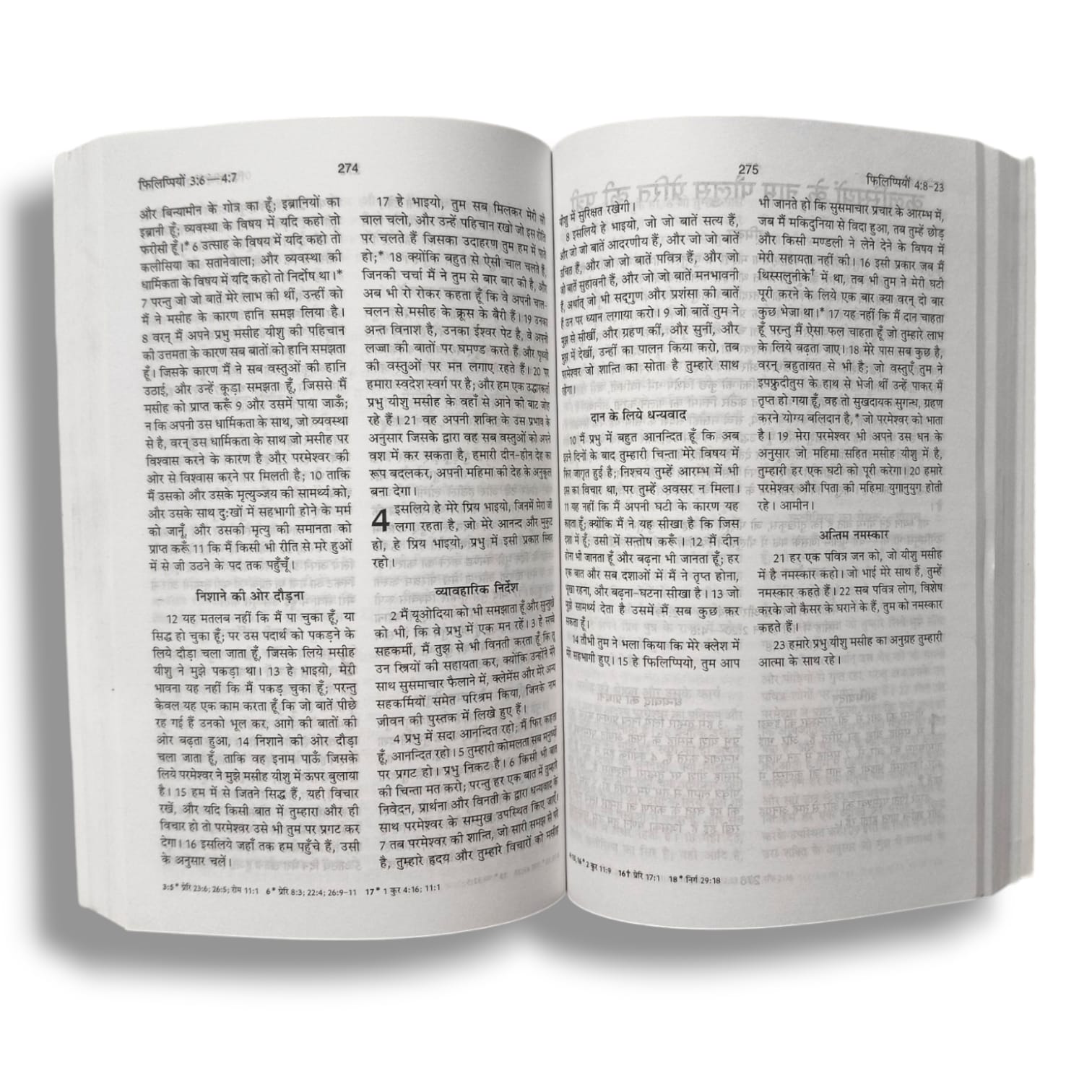 . The New Testament in Hindi may be based on various translations, with one of the common ones being the "Hindi Standard Version" (HSV), which is a widely recognized and respected translation.For Christians, the New Testament is a central religious text that contains the teachings of Jesus Christ, the foundation of Christian faith, and the guidance for Christian living.The Hindi New Testament is used for worship, study, and spiritual guidance by Hindi-speaking Christian communities and individuals.The New Testament in Hindi has had a significant cultural and religious impact on Hindi-speaking Christian communities and has contributed to the spread of Christianity in India.
