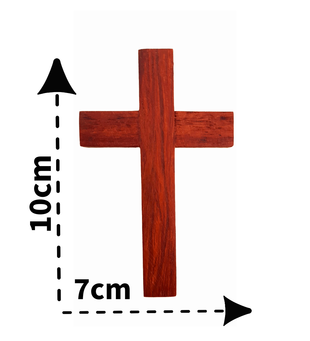 The cross is made from solid wood, which can be of various types, such as oak, pine, or other wood species. It is compact and typically designed to be handheld, placed on a small stand, or used for personal and private religious or decorative purposes. Small wooden crosses are often designed with simplicity in mind, featuring clean lines and a minimalist appearance. The wood's natural finish is usually preserved, allowing the wood grain to show, giving it a warm and rustic look. Wooden crosses are commonly used as religious symbols in Christianity, representing the crucifixion of Jesus Christ. They can be used for personal devotion, prayer, or as part of religious These small wooden crosses are popular for personal use, as gifts, or as decorative items in homes, churches, and other religious settings.