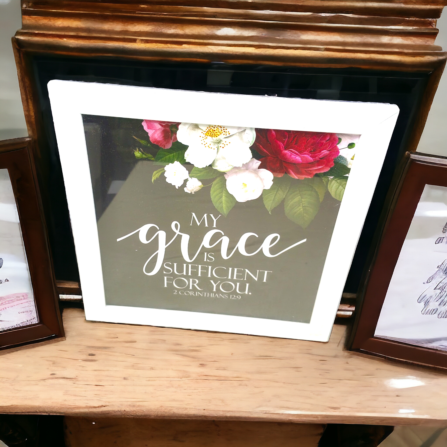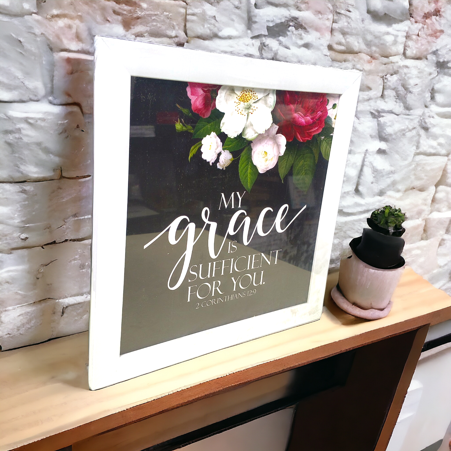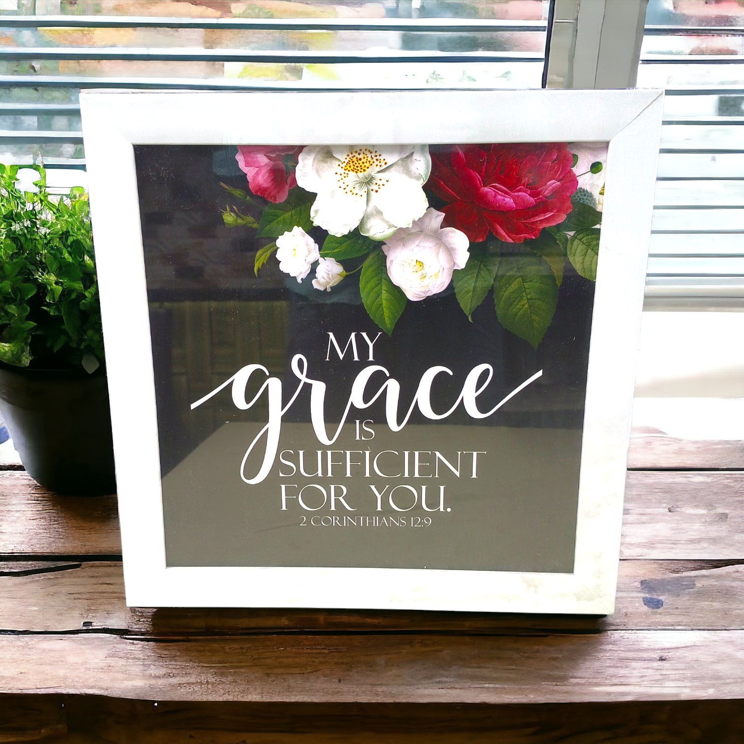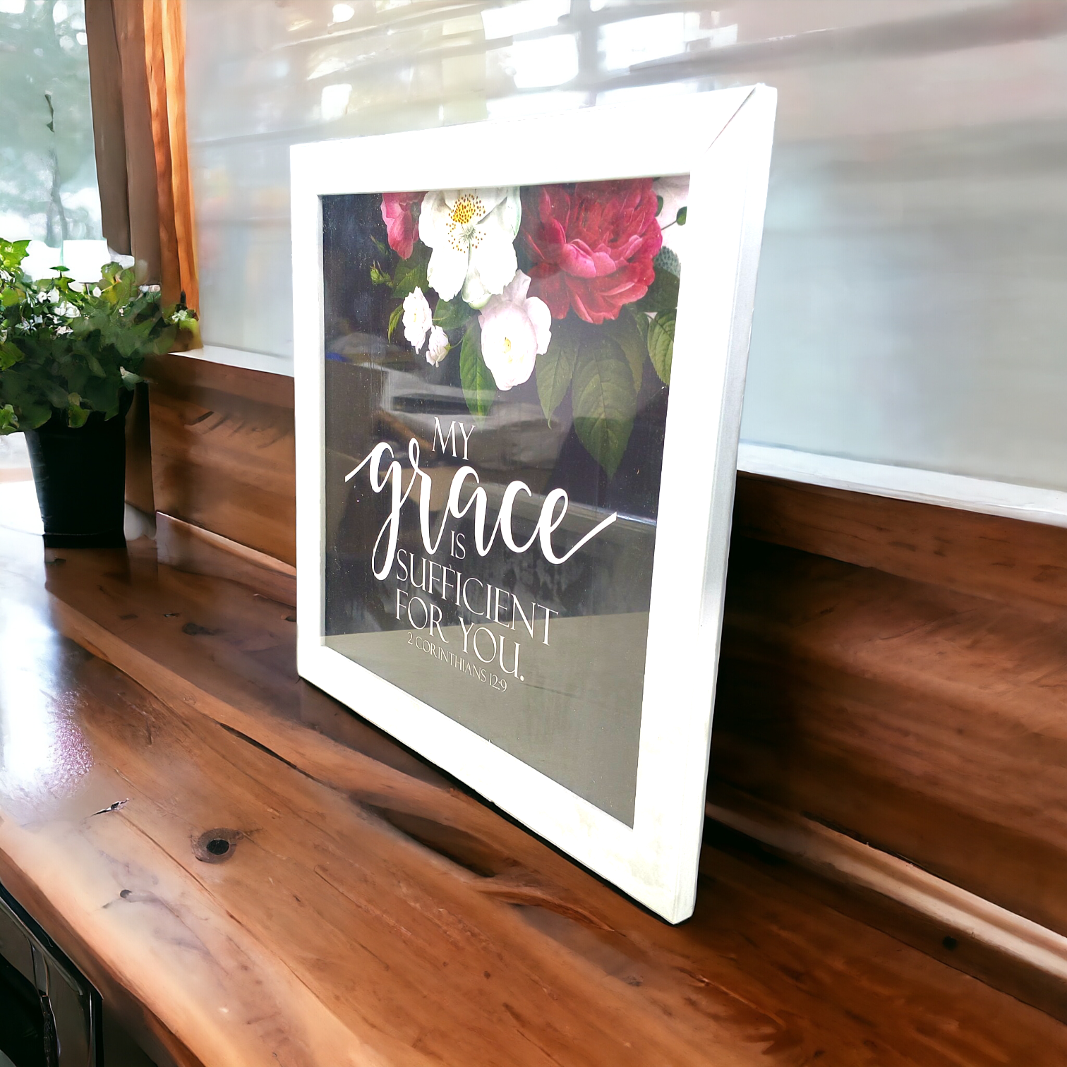 Elevate your home décor with this High-Quality Premium Bible Verses Photo Frame, featuring the empowering scripture from 2 Corinthians 12:9: