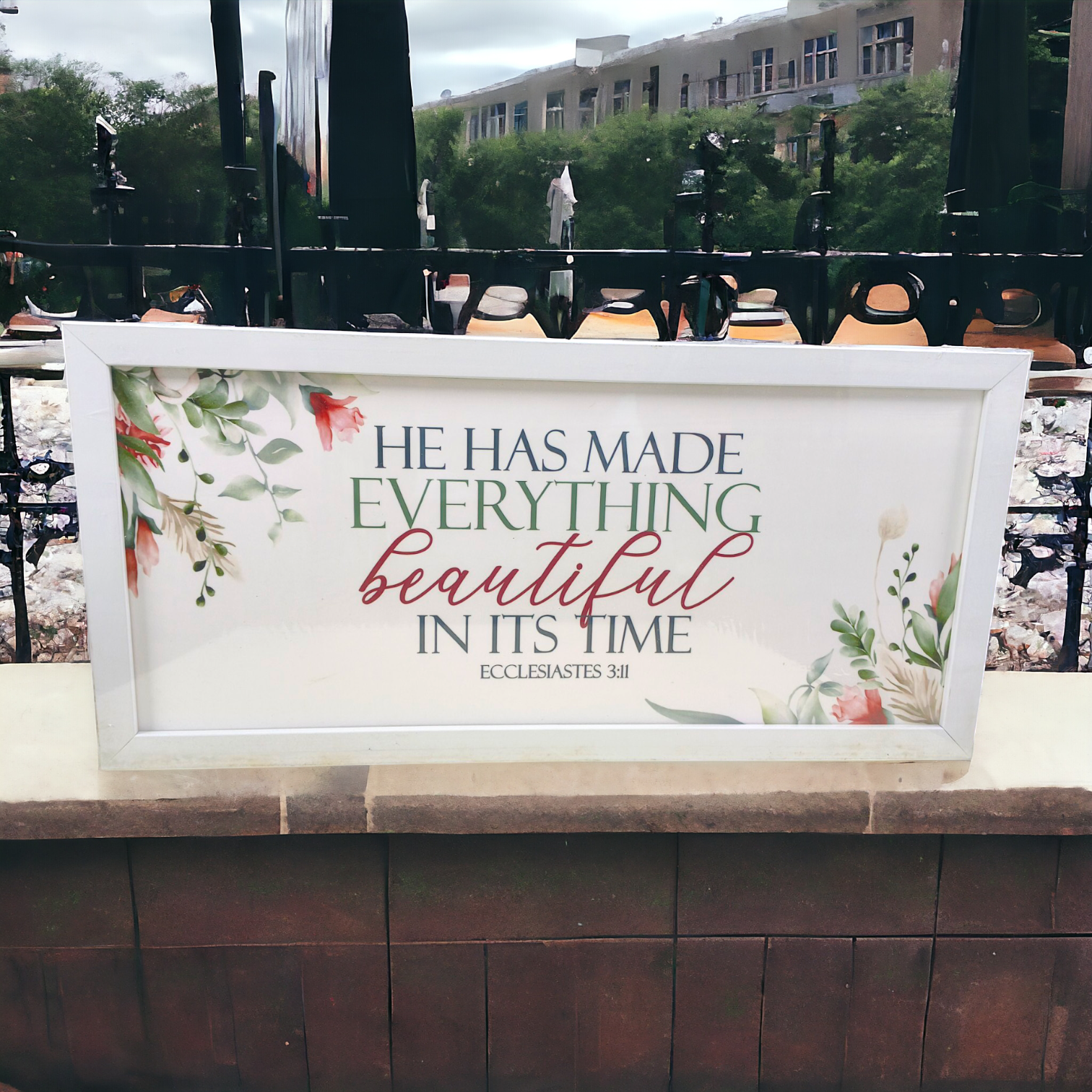 - Biblical Verse: Features the inspiring scripture Ecclesiastes 3:11: "He has made everything beautiful in its time."
