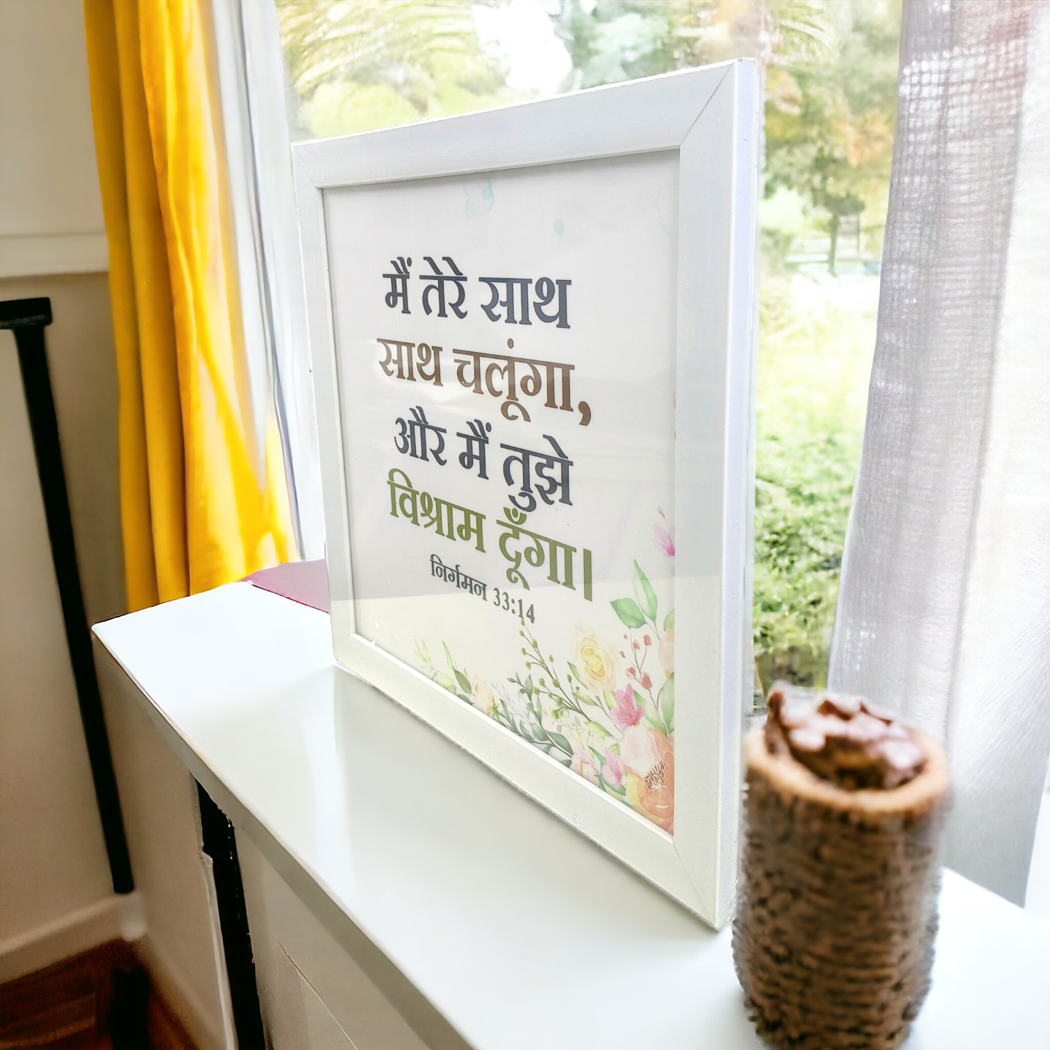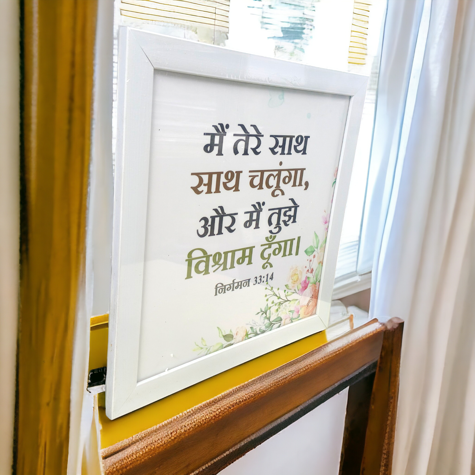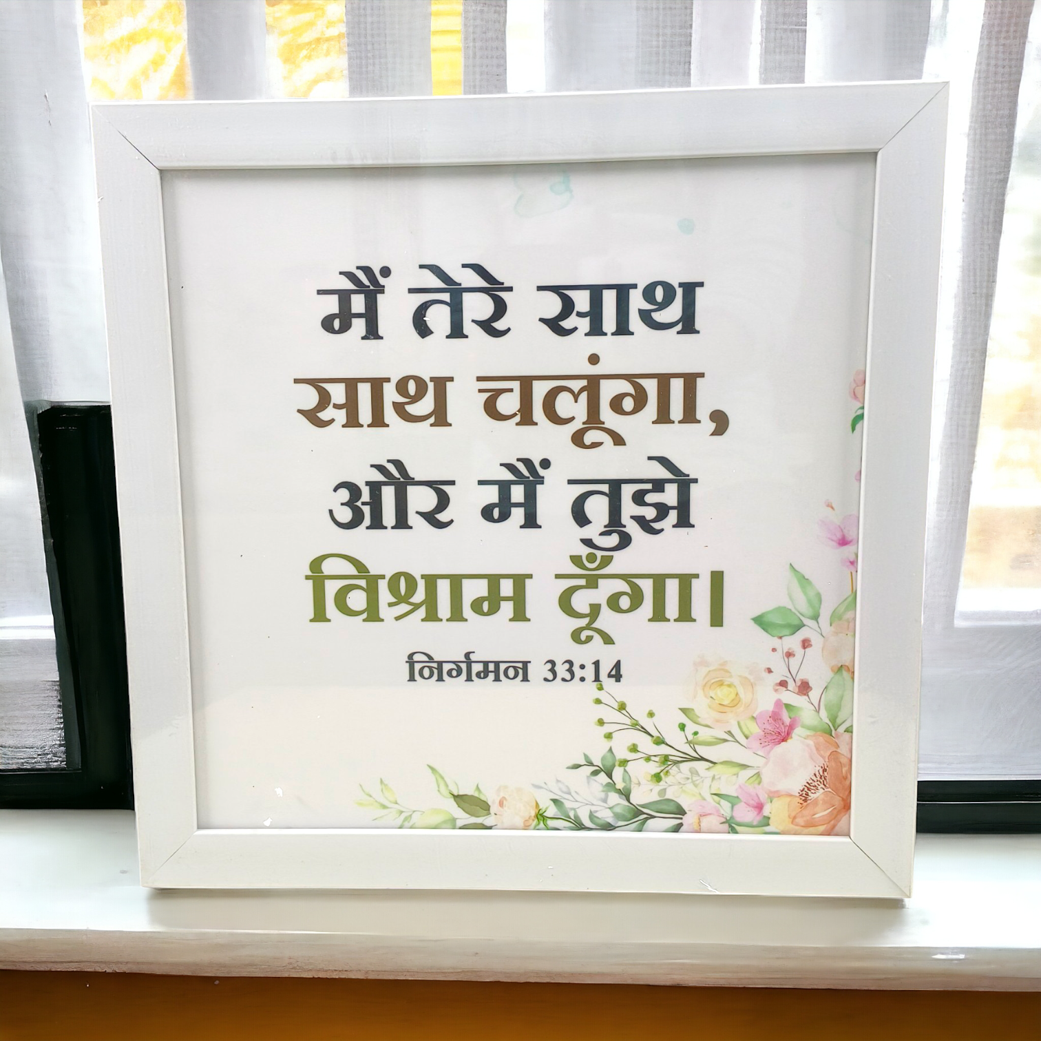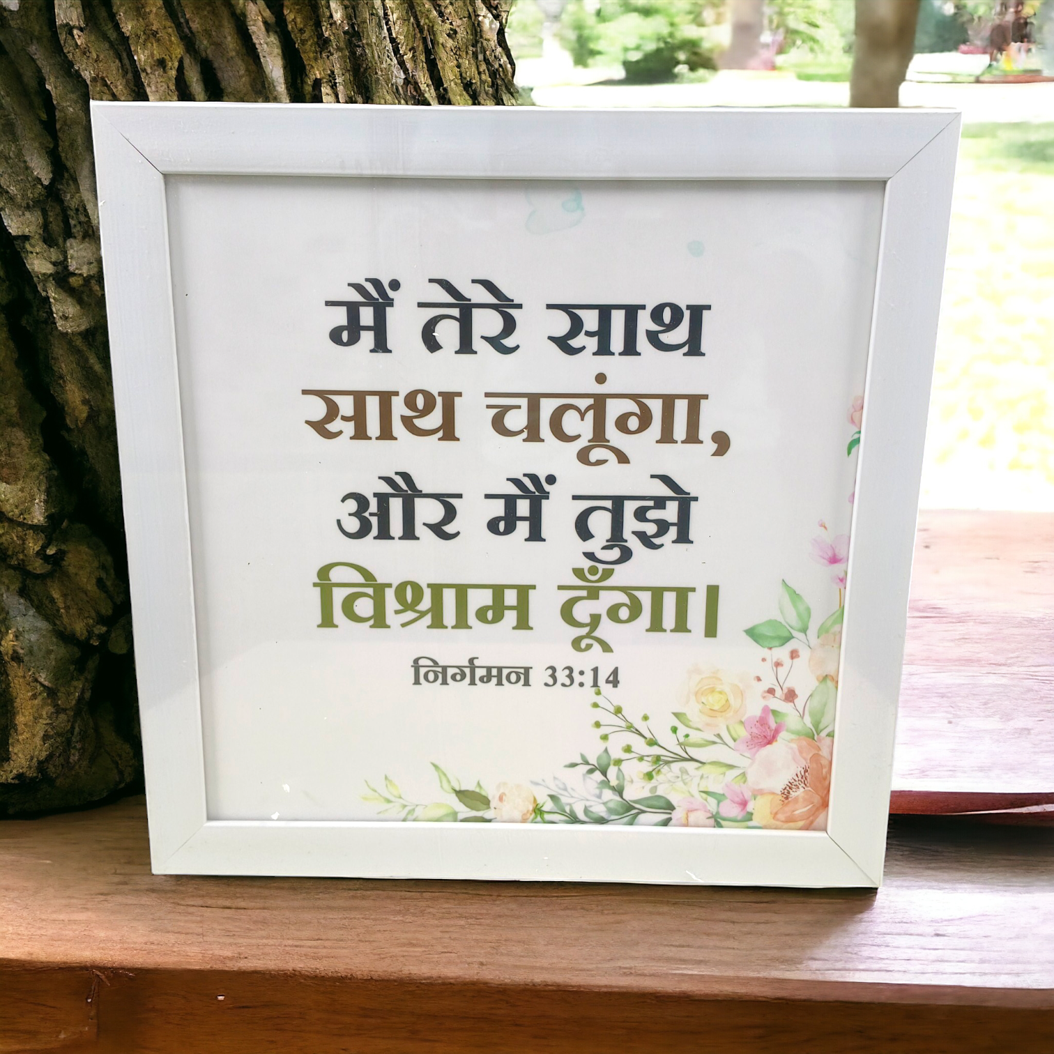 High Quality | Premium Hindi Bible Verses Photo Frame | Hanging Frame | Best Gift For Home Decor | Size : 14 inch By 14 inch | ( निर्गमन 33:14 ) ( Exodus 33:14 )