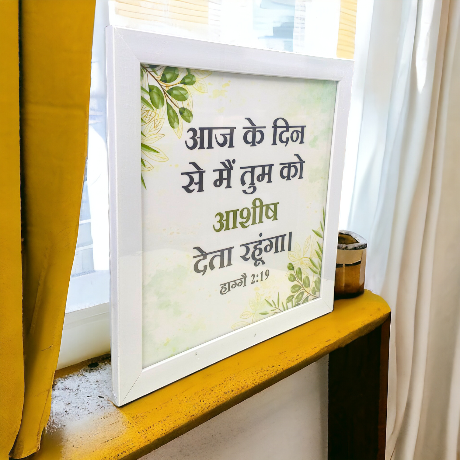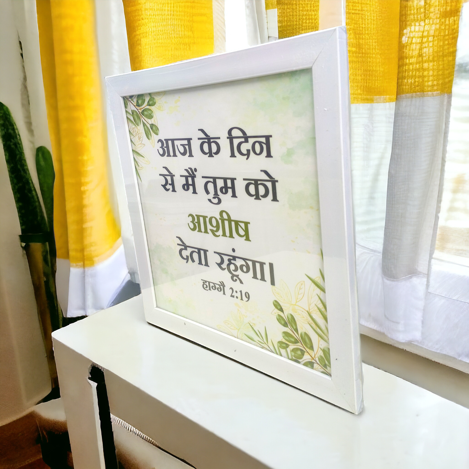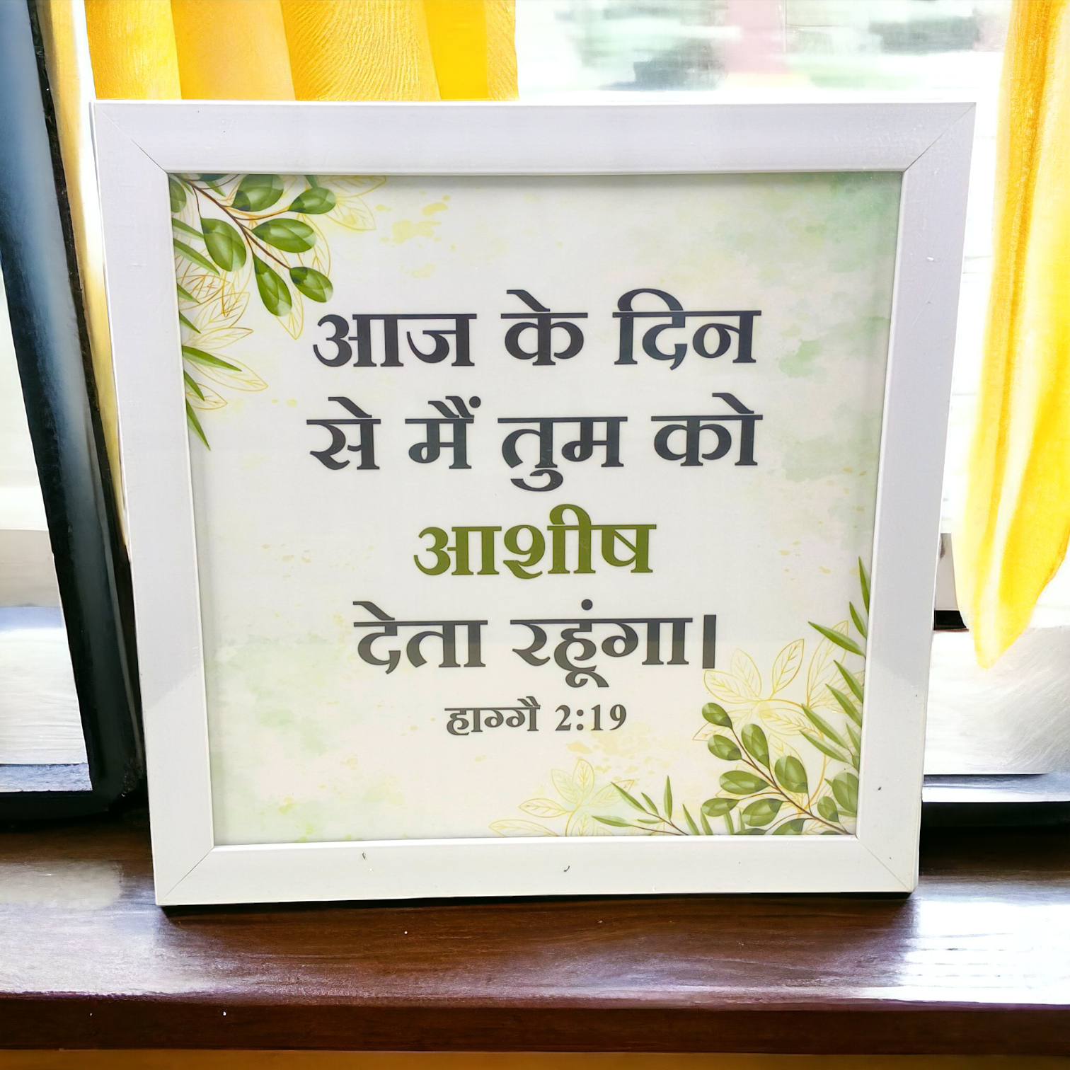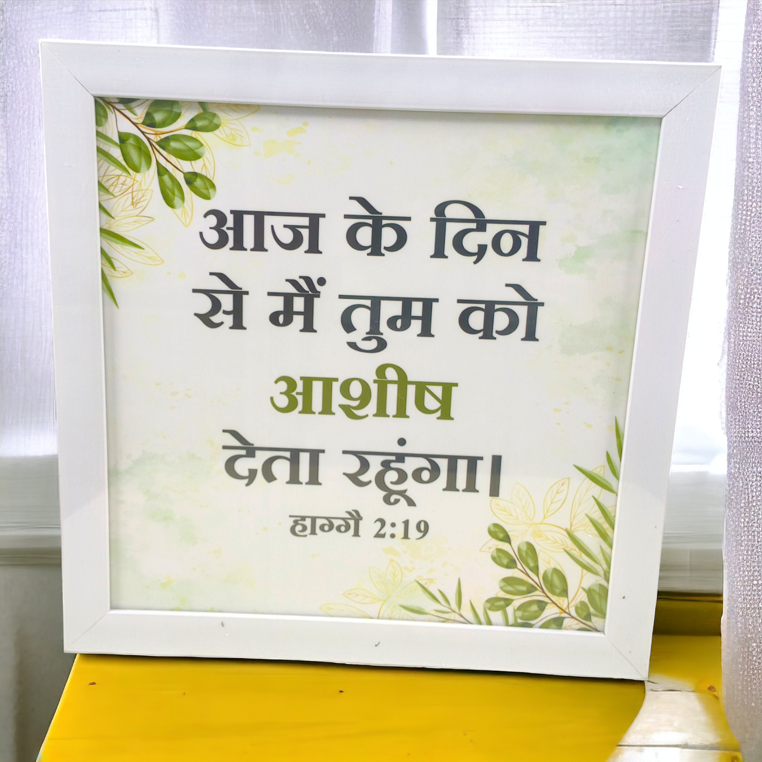 High Quality | Premium Hindi Bible Verses Photo Frame | Hanging Frame | Best Gift For Home Decor | Size : 14 inch By 14 inch | ( हाग्गै 2:19 )( Haggai 2:19 )