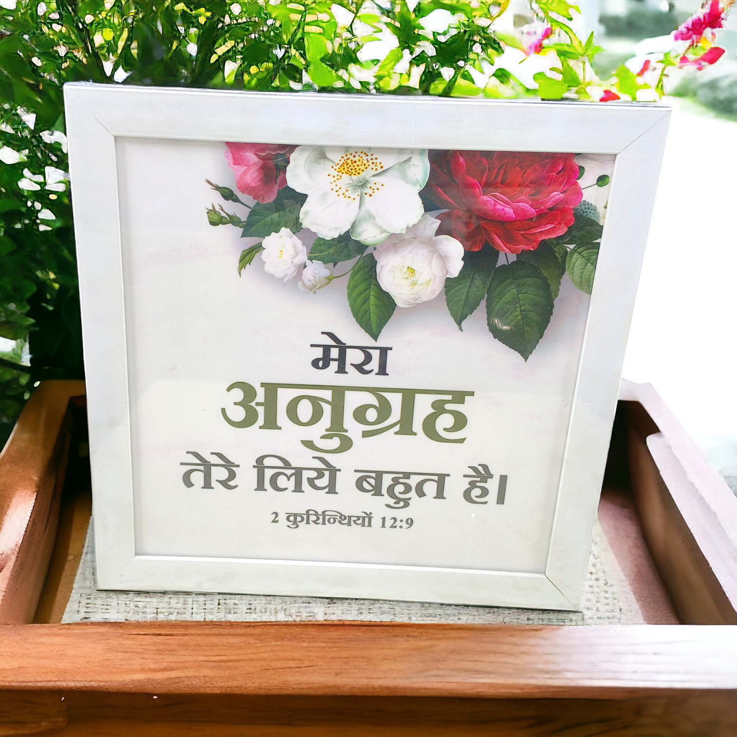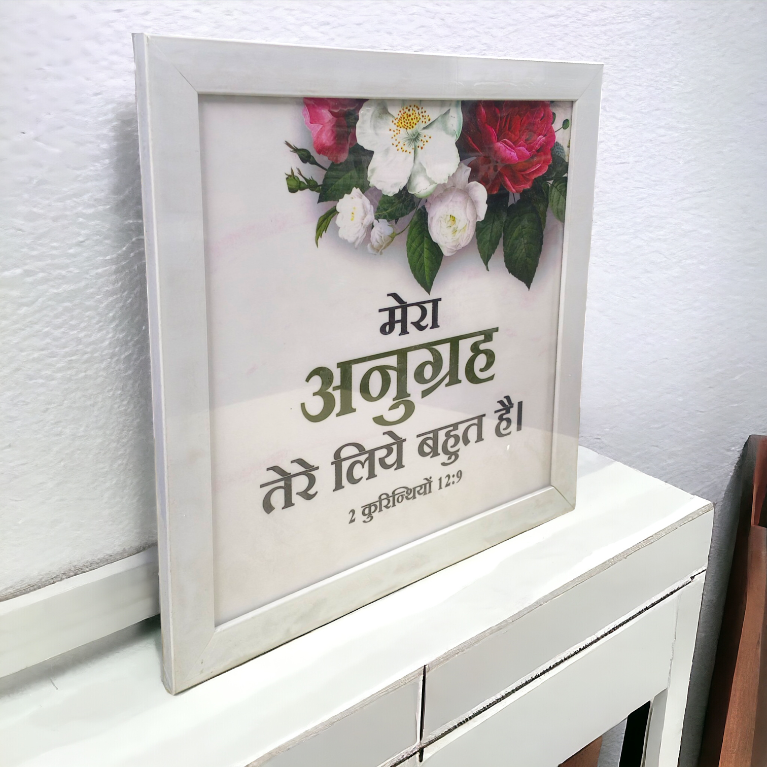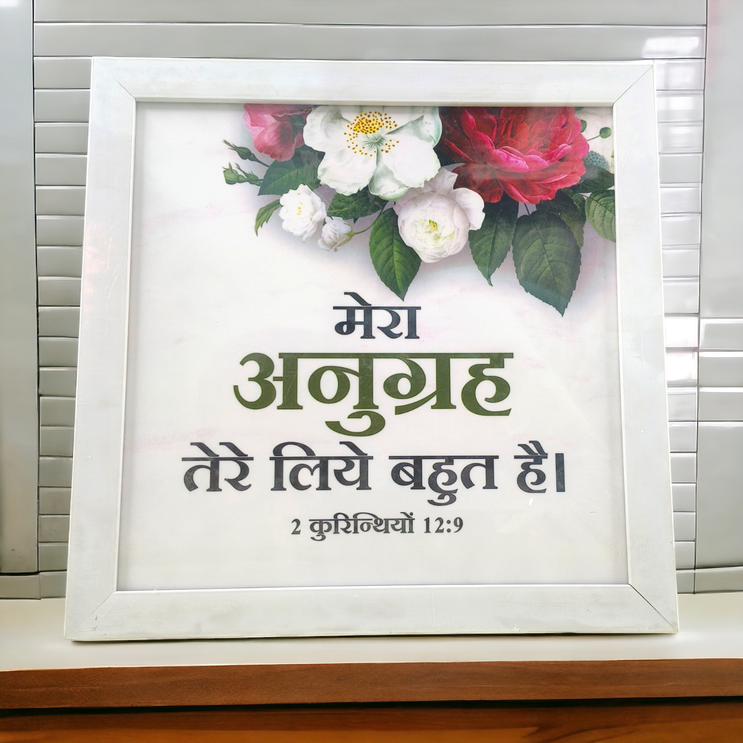 High Quality | Premium Hindi Bible Verses Photo Frame | Hanging Frame | Best Gift For Home Decor | Size : 14 inch By 14 inch |( 2 कुरिन्थियों 12:9 ) ( 2 Corinthians )