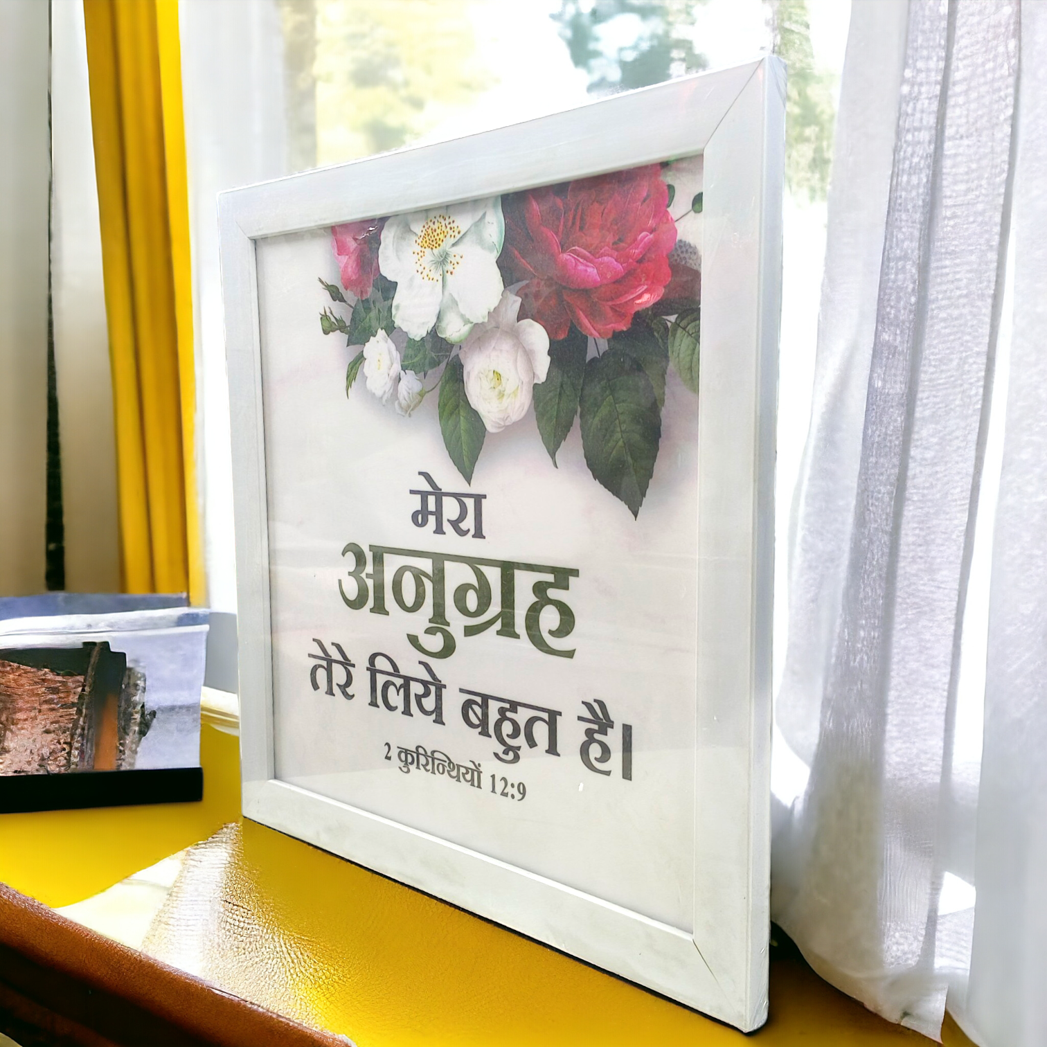 Celebrate God’s promise of grace and strength with this Premium Hindi Bible Verses Photo Frame featuring 2 Corinthians 12:9 (2 कुरिन्थियों 12:9). This beautifully crafted frame displays the powerful verse in Hindi, offering comfort and encouragement, especially in times of struggle.