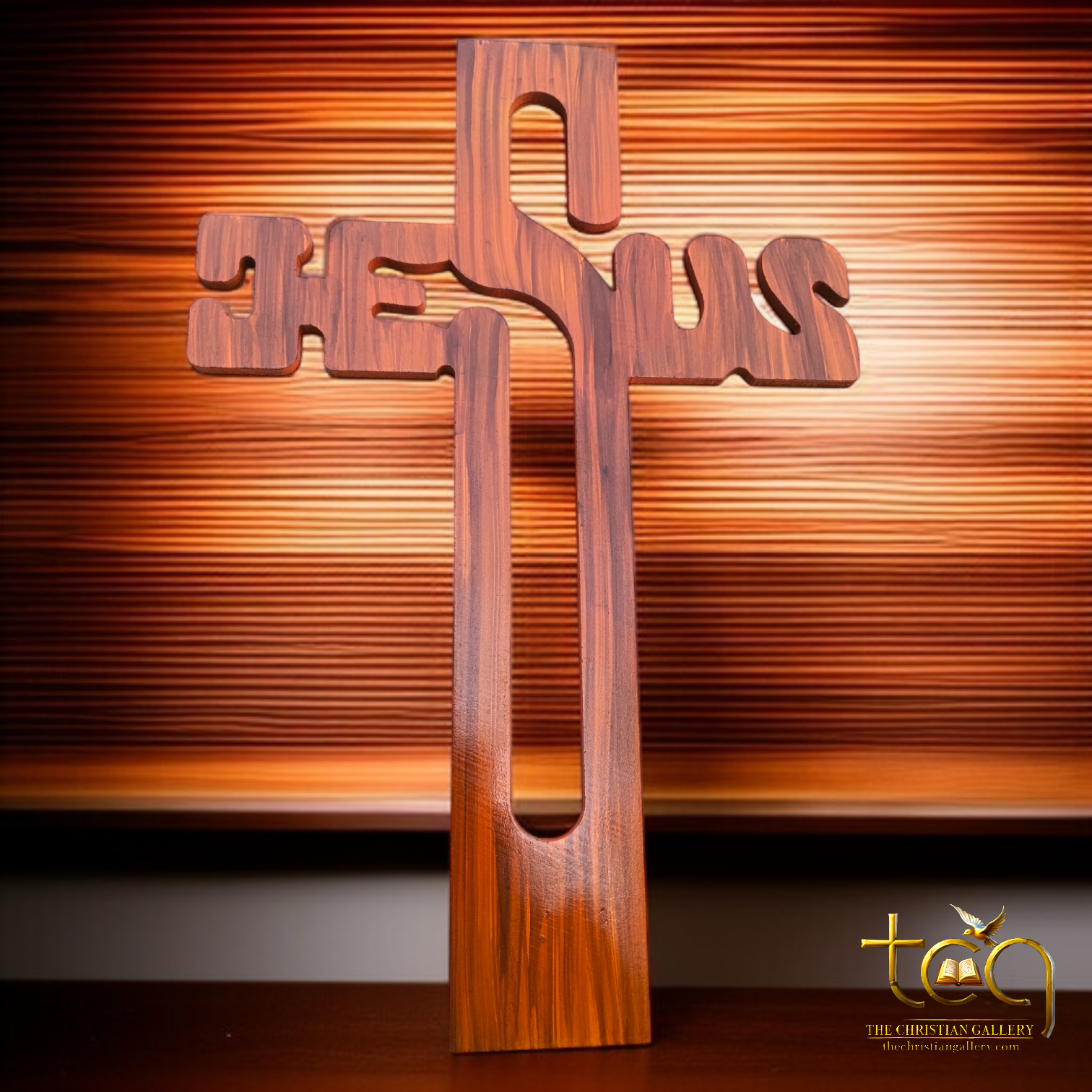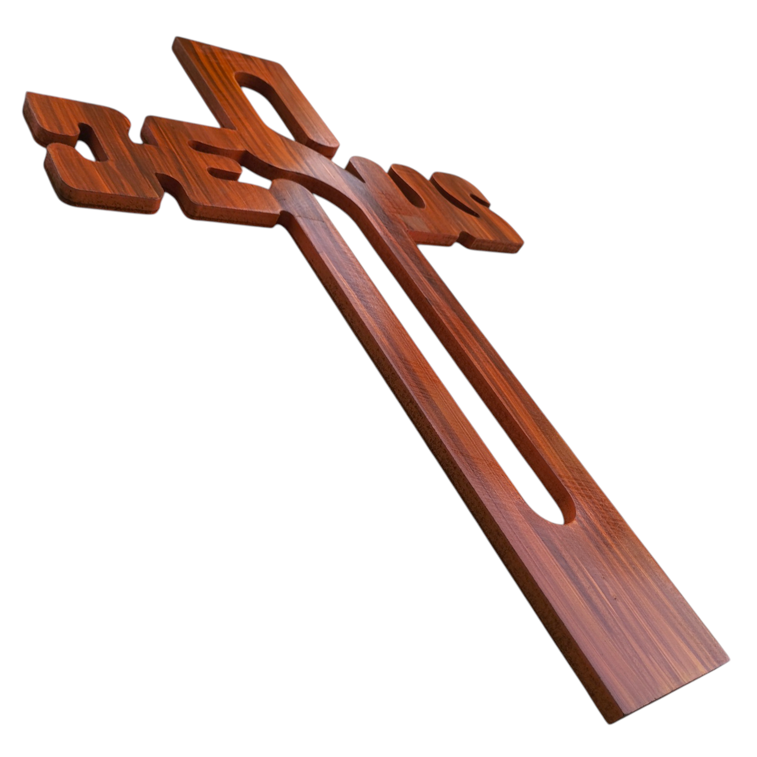 Each cross is precision-cut using advanced laser technology, creating intricate detailing that spells out "JESUS" within the form of the cross itself. This elegant design offers a contemporary twist on a timeless symbol, making it a truly distinctive addition to your decor. Made from high-quality wood, this cross features a pure polished finish that enhances the natural beauty of the wood grain, giving it a smooth, refined touch and a subtle sheen that catches the light beautifully.