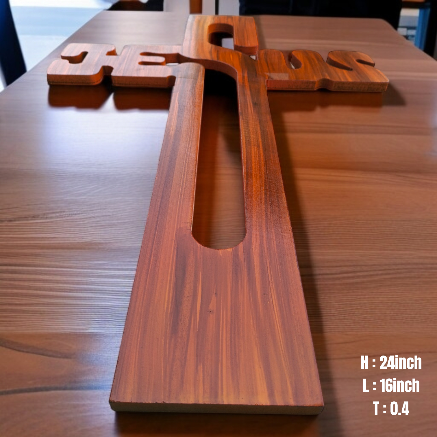 Jesus Word Laser Cuting Wooden Cross | Hogging Cross | with Pure Polished | L:16 inch | H:24 inch | W:0.4 inch | For Home Decor | Best Gift To Friend's