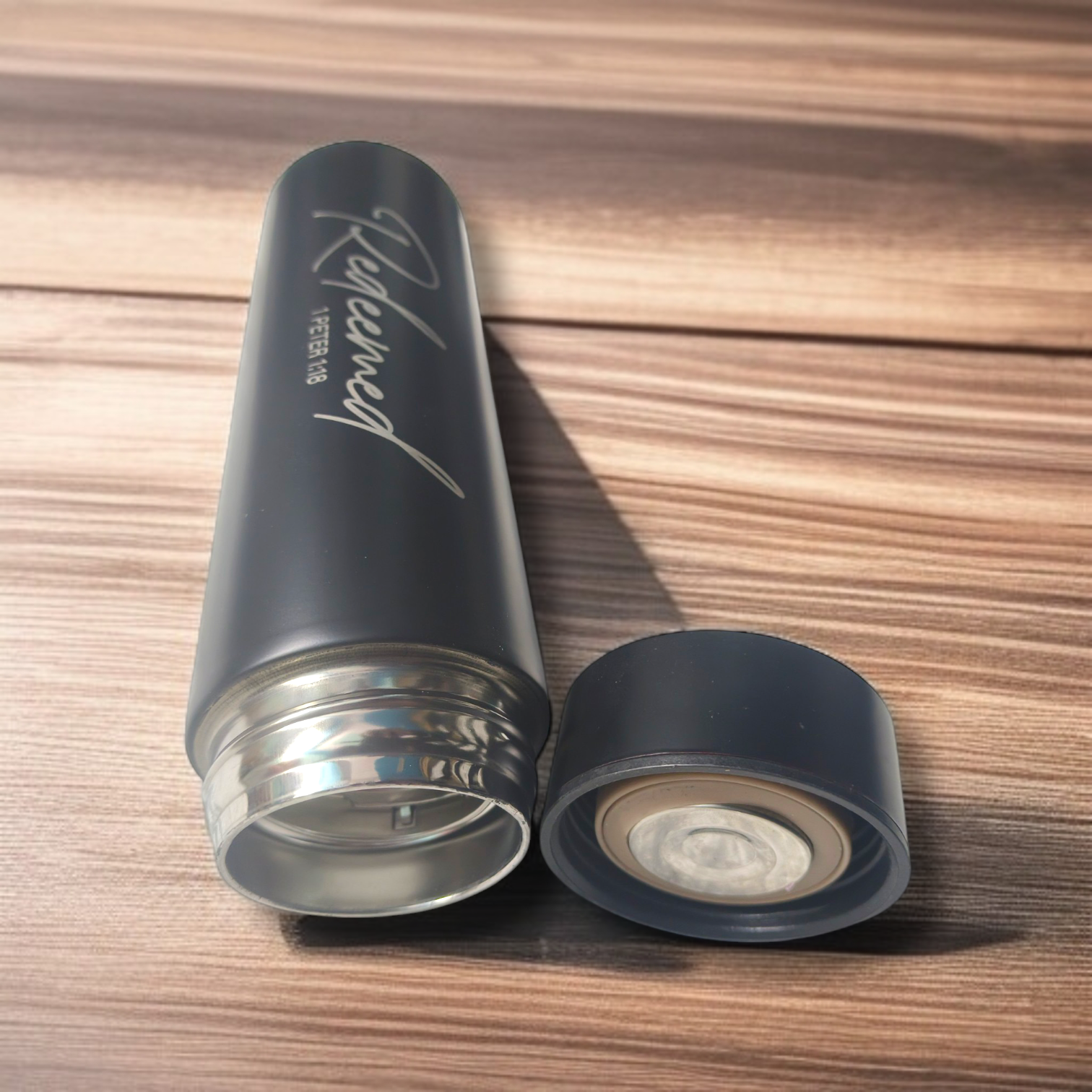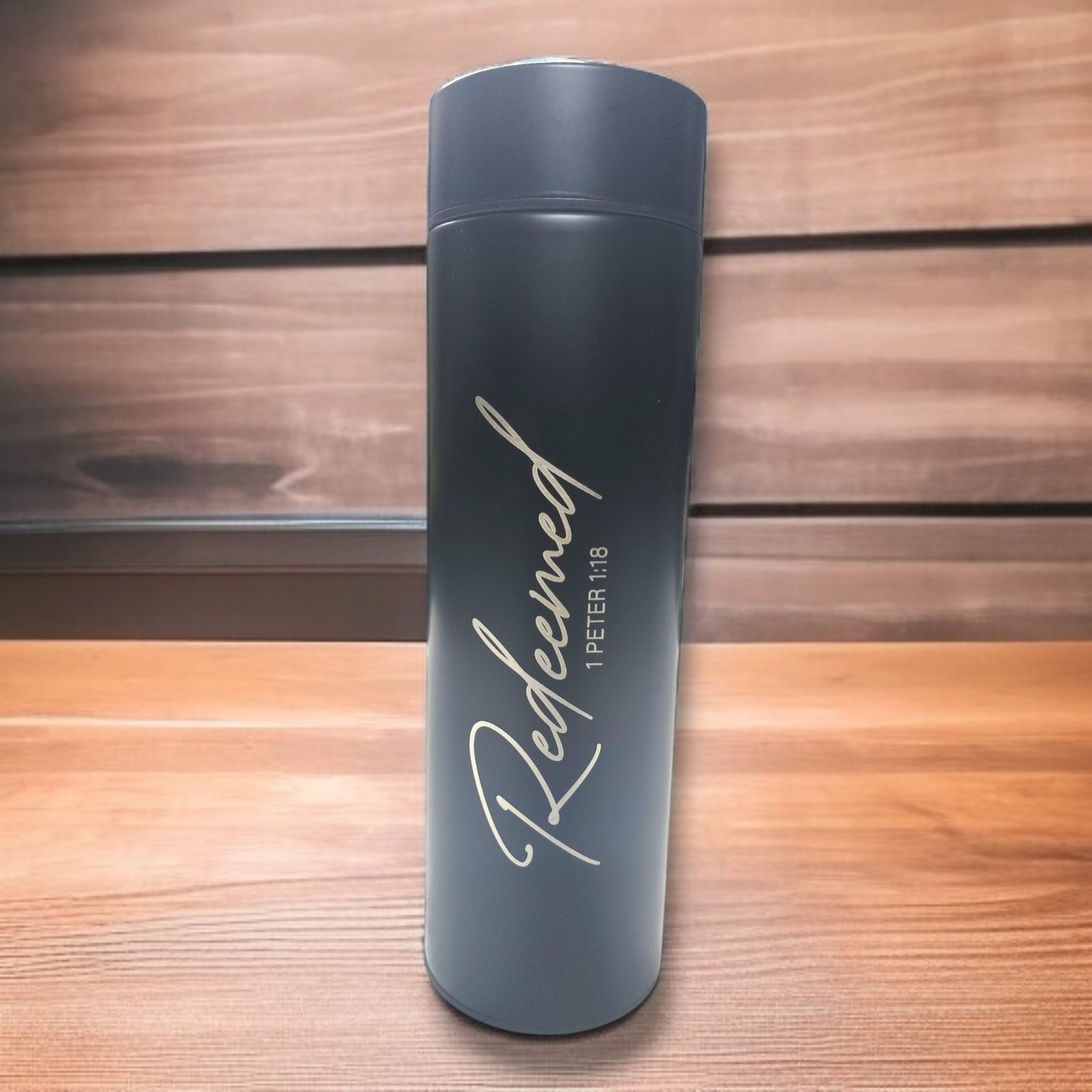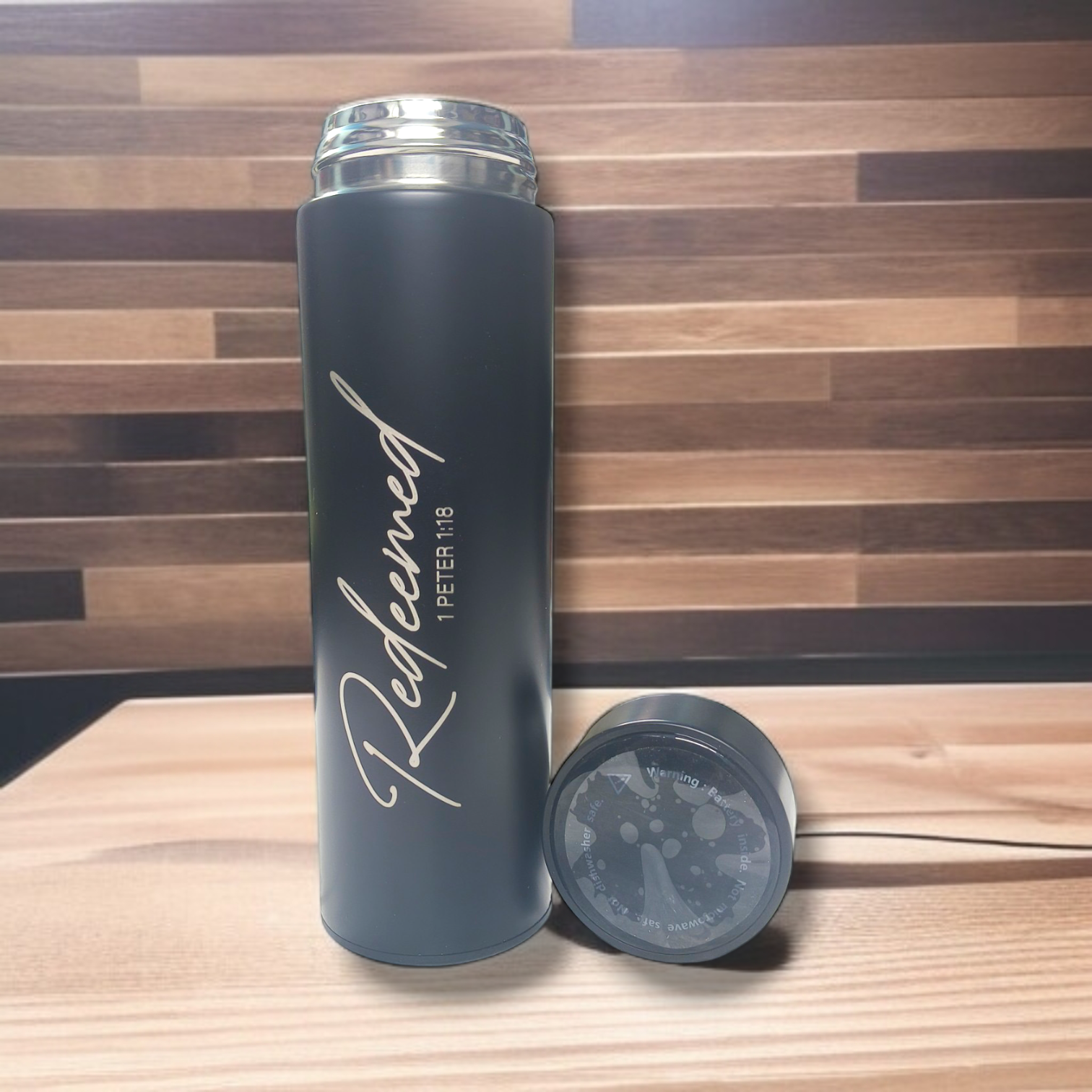 LED Temperature Display | Water Bottle 750 ml | Bible Verses Printed (1 Peter 1:18) | Premier Kitchen | Pure Stel
