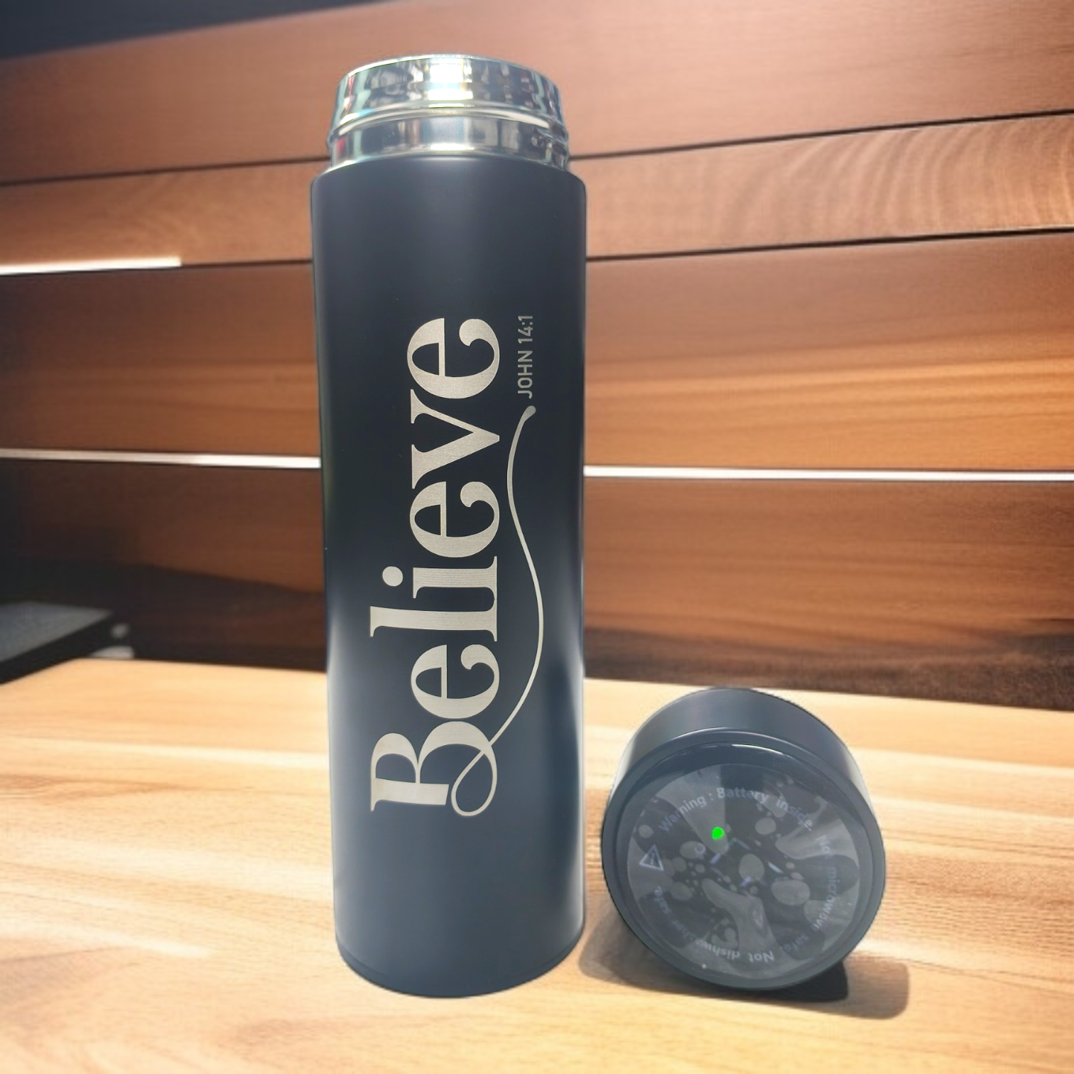 LED Temperature Display | Water Bottle 750 ml | Bible Verses Printed (John 14:1) | Premier Kitchen | Pure Stel