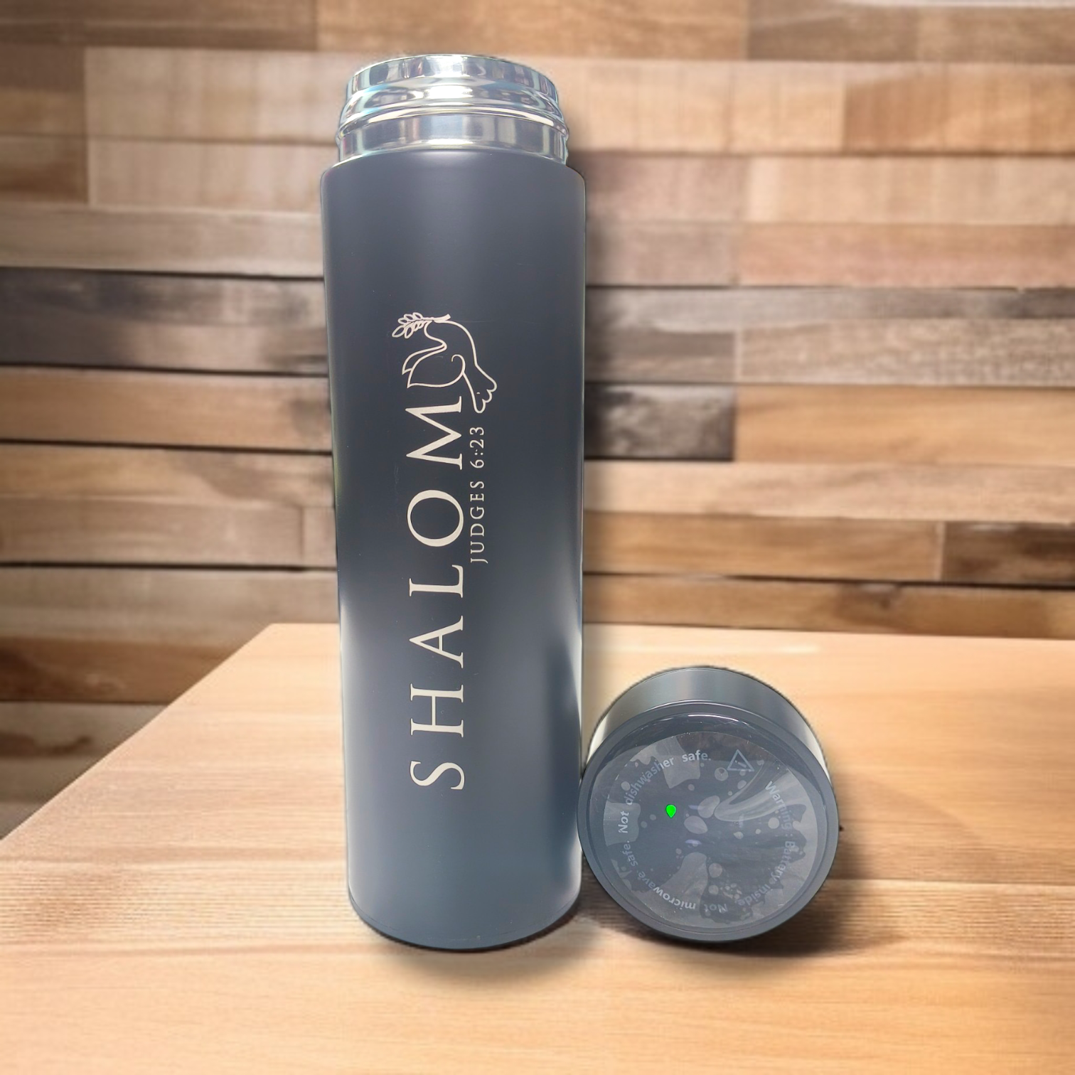 LED Temperature Display | Water Bottle 750 ml | Bible Verses Printed (Judges 6:23) | Premier Kitchen | Pure Stel