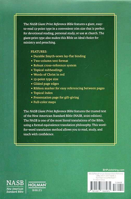 The NASB Giant Print Reference Bible uses what is considered the most accurate English translation of the original biblical languages in a font size that is comfortable to read for those who are challenged by smaller fonts and invites all to read Gods Word.