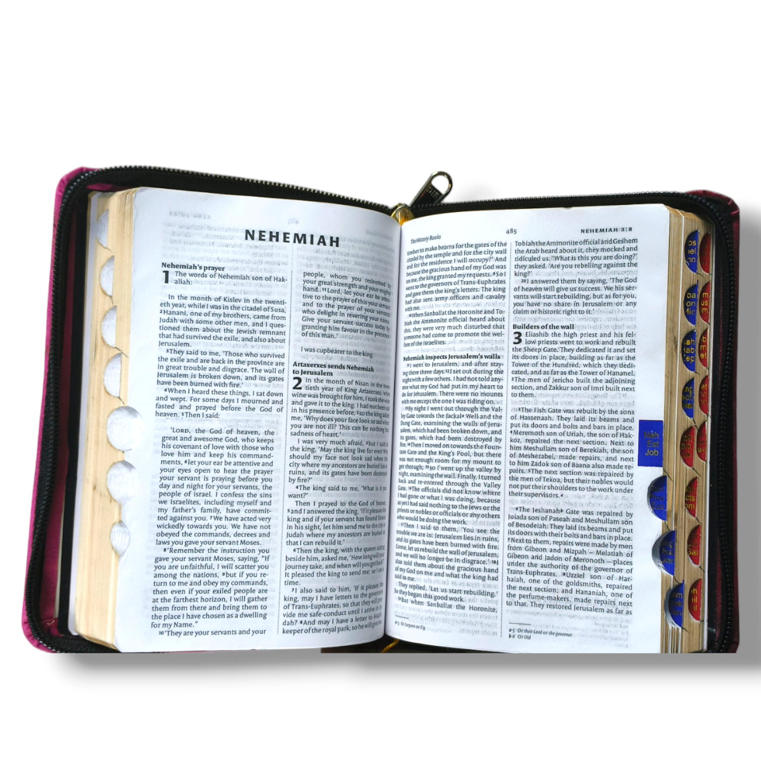 š Thumb Index Tabs: Easy navigation through books of the Bible with user-friendly thumb indexing.