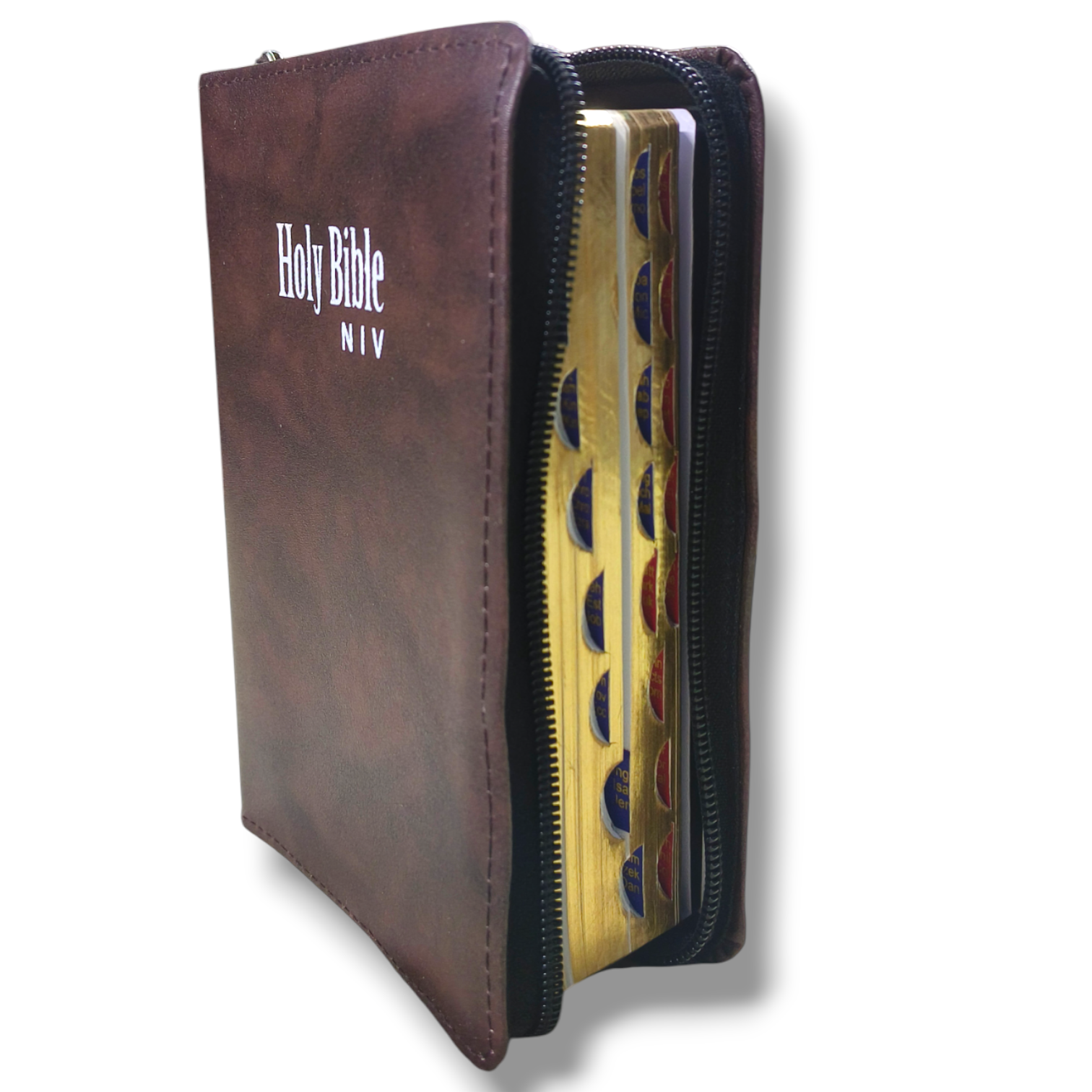 NIV Compact Edition Bible | Thumb Index Bible | With Dark Brown Attractive Design Bound | New Edition Bible Duo-Tone