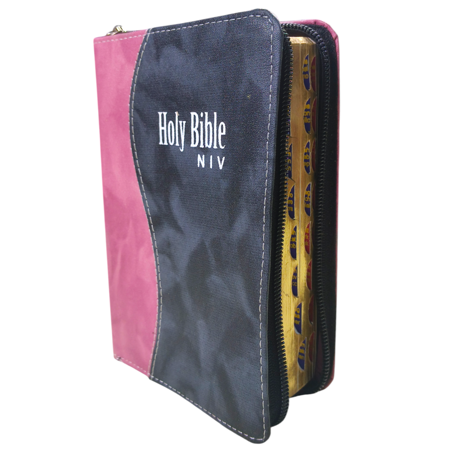 NIV Compact Edition Bible | Thumb Index Bible | With gray & Pink Attractive Design Bound | New Edition Bible Duo-Tone