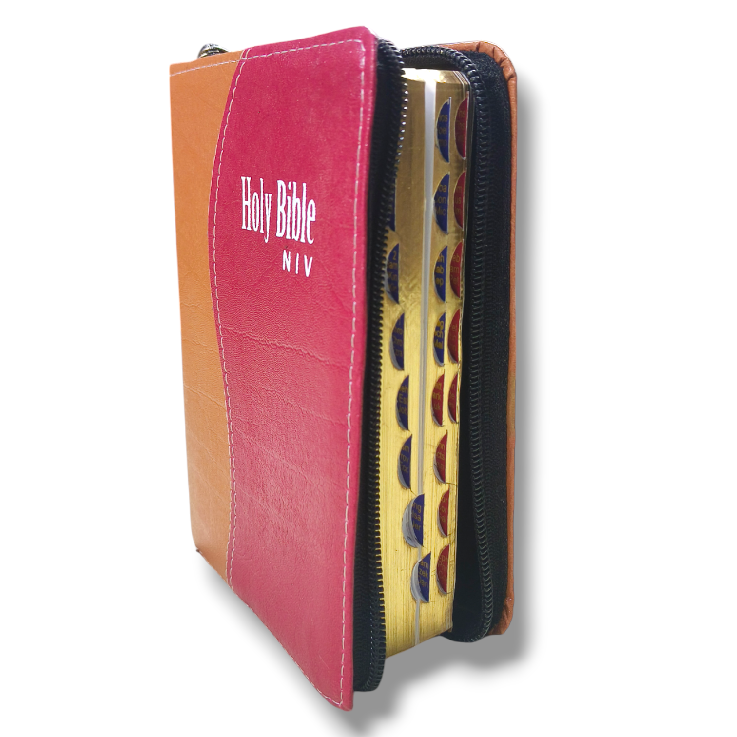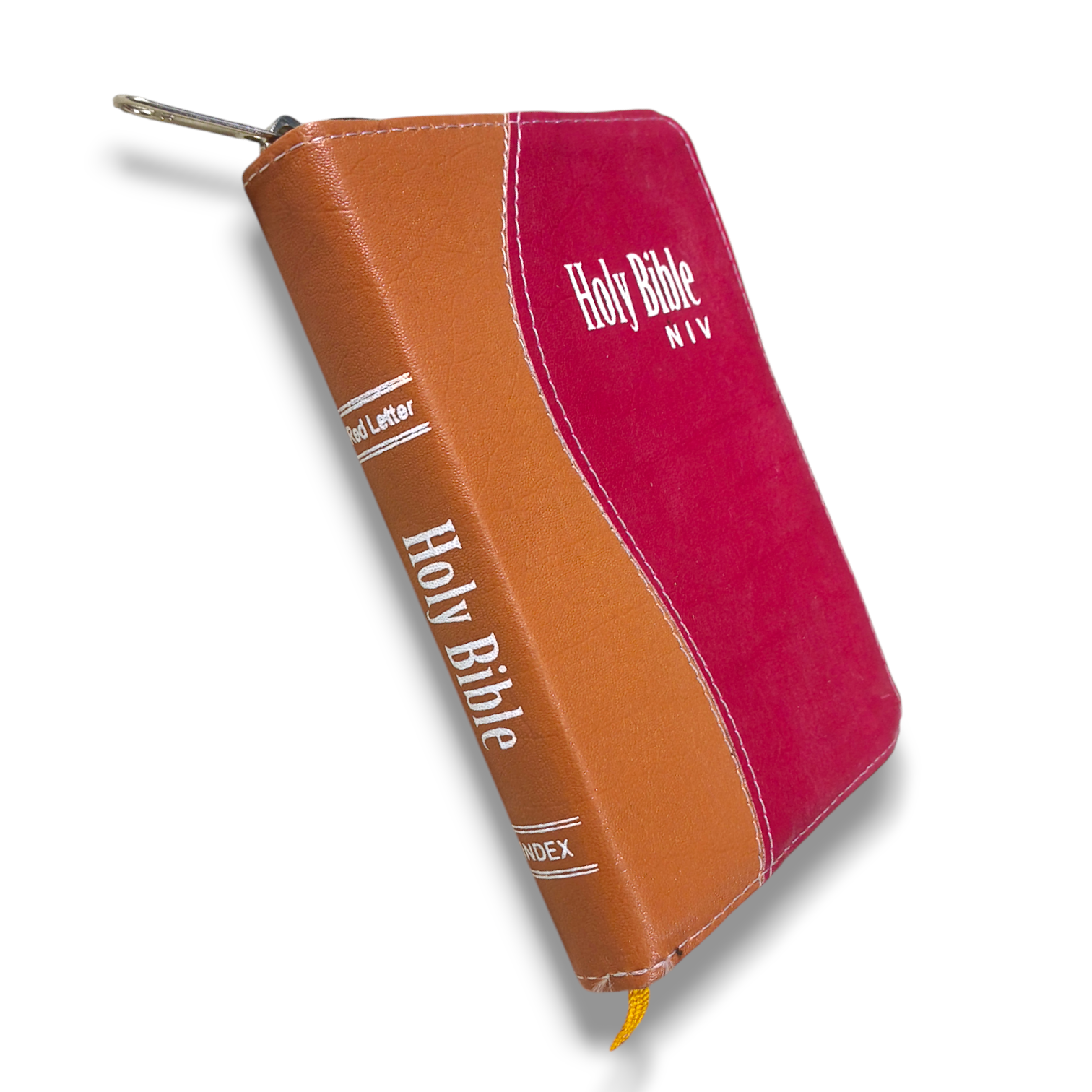 NIV Compact Edition Bible | Thumb Index Bible | With Light Brown & Red Attractive Design Bound | New Edition Bible Duo-Tone | D7