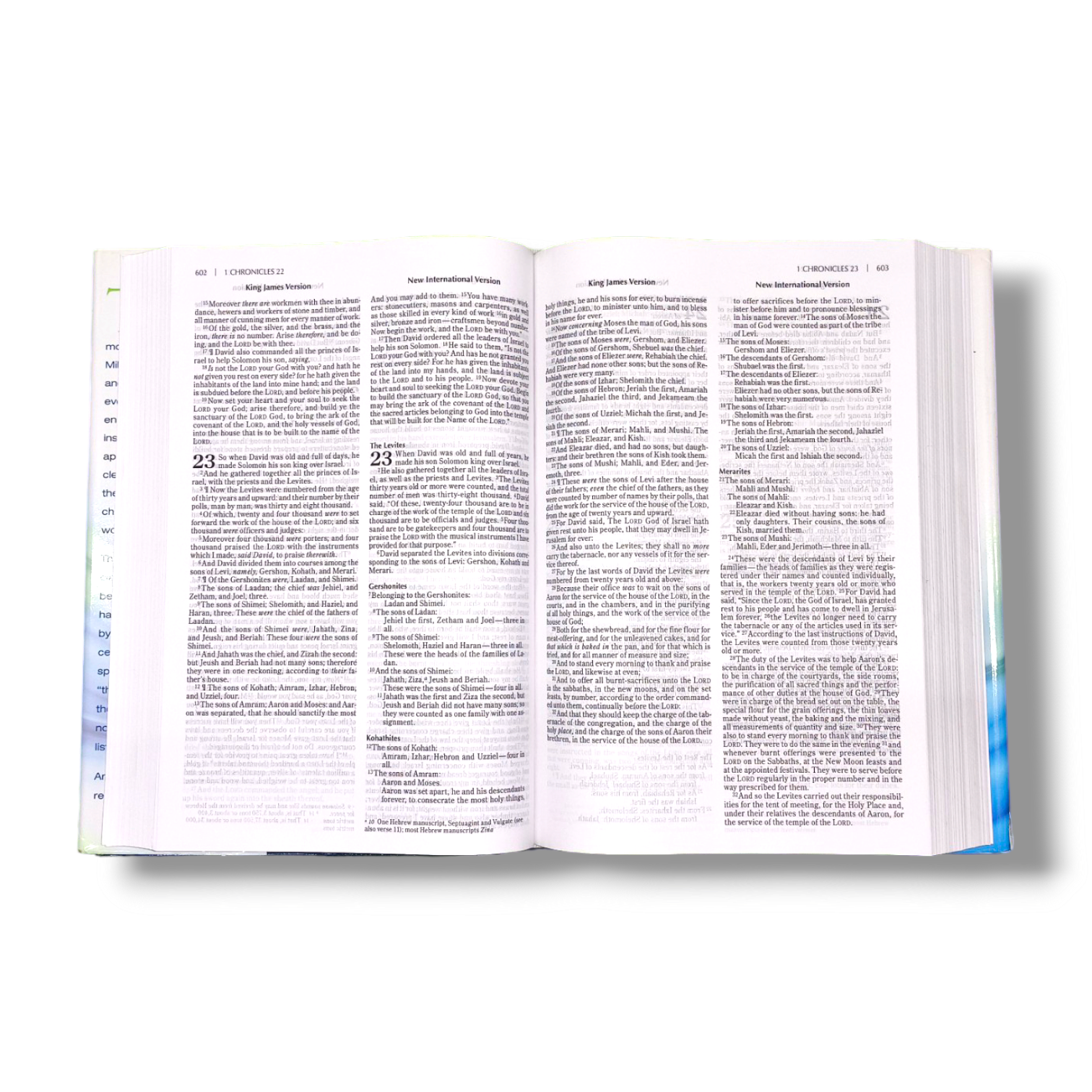 Parallel Translations: Delve into Scripture with both the New International Version (NIV) and the King James Version (KJV) presented side by side on the same page, providing valuable insights and perspectives.