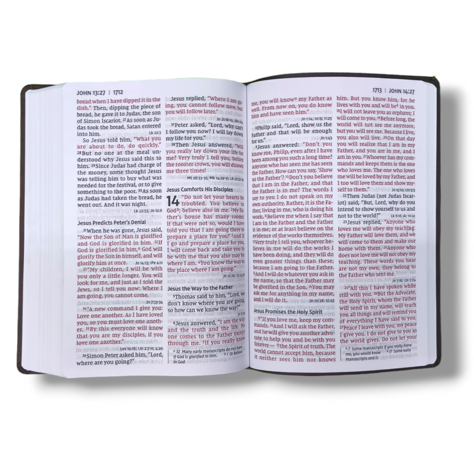 Red-Letter Text: The words of Jesus are highlighted in red, providing emphasis and clarity on His teachings and messages throughout the Gospels.