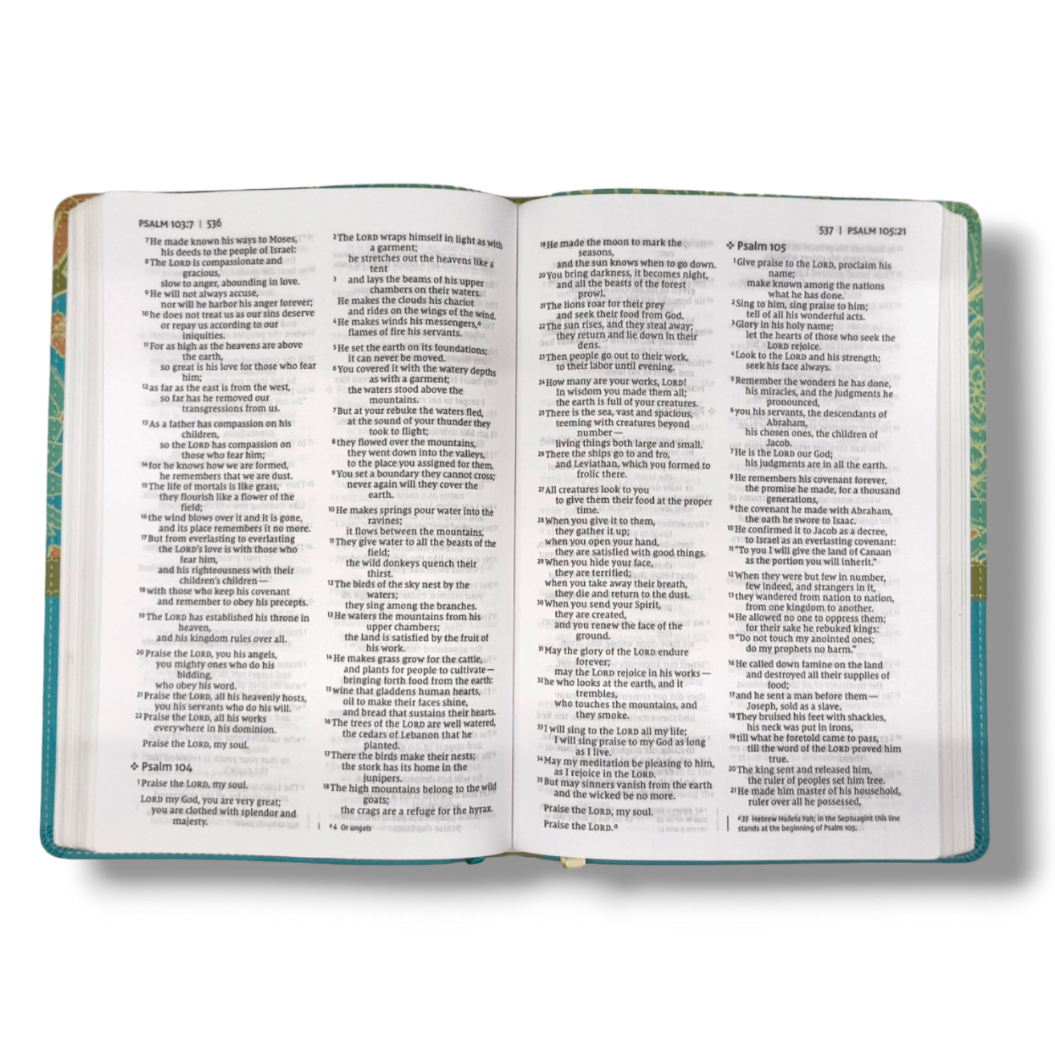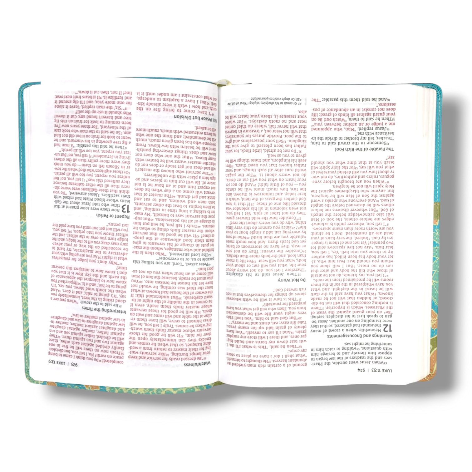 Leathersoft Cover in Turquoise: The Bible is presented in an elegant Turquoise Leathersoft cover, combining style with durability for a sophisticated and enduring appearance.