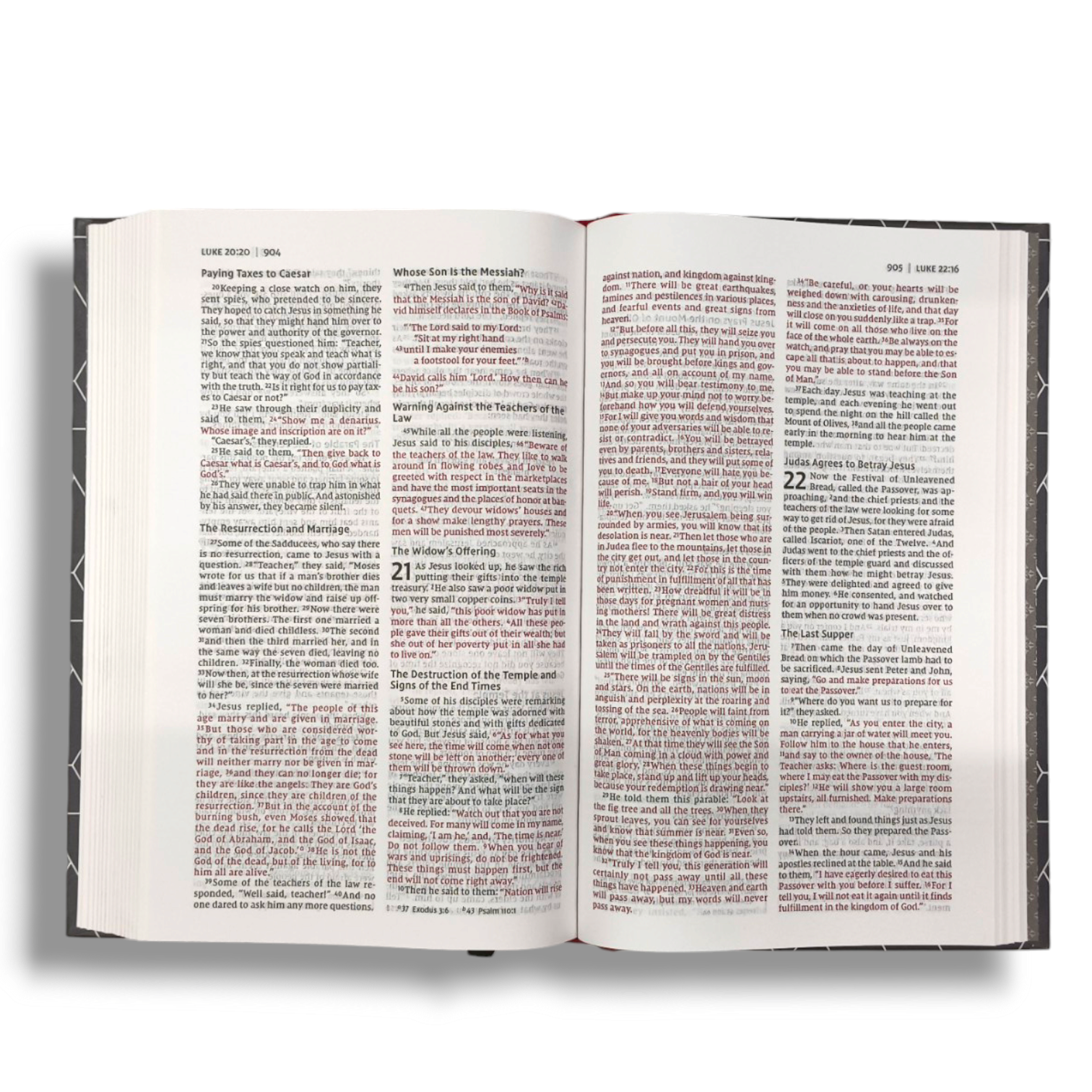 Hardcover with Hard Bound: The Bible features a durable hardcover with a hardbound format, ensuring longevity and resistance for sustained use.