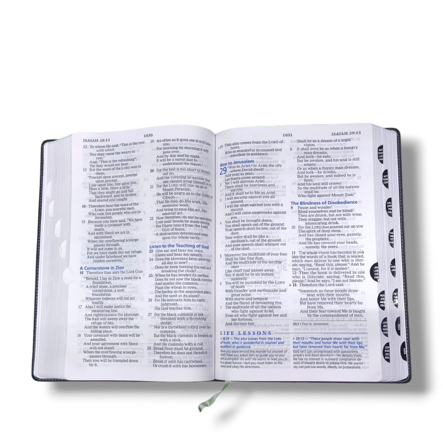 Large Print Edition: Enjoy comfortable reading with large print text, making it easier to engage with Scripture for extended periods without eye strain.