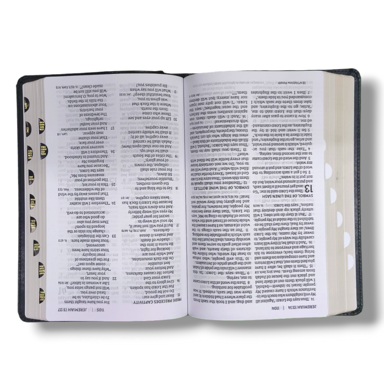 Cross Design Cover: Adorned with an elegant cross design cover, this Bible serves as a symbol of faith and a reminder of the enduring message of the Gospel.
