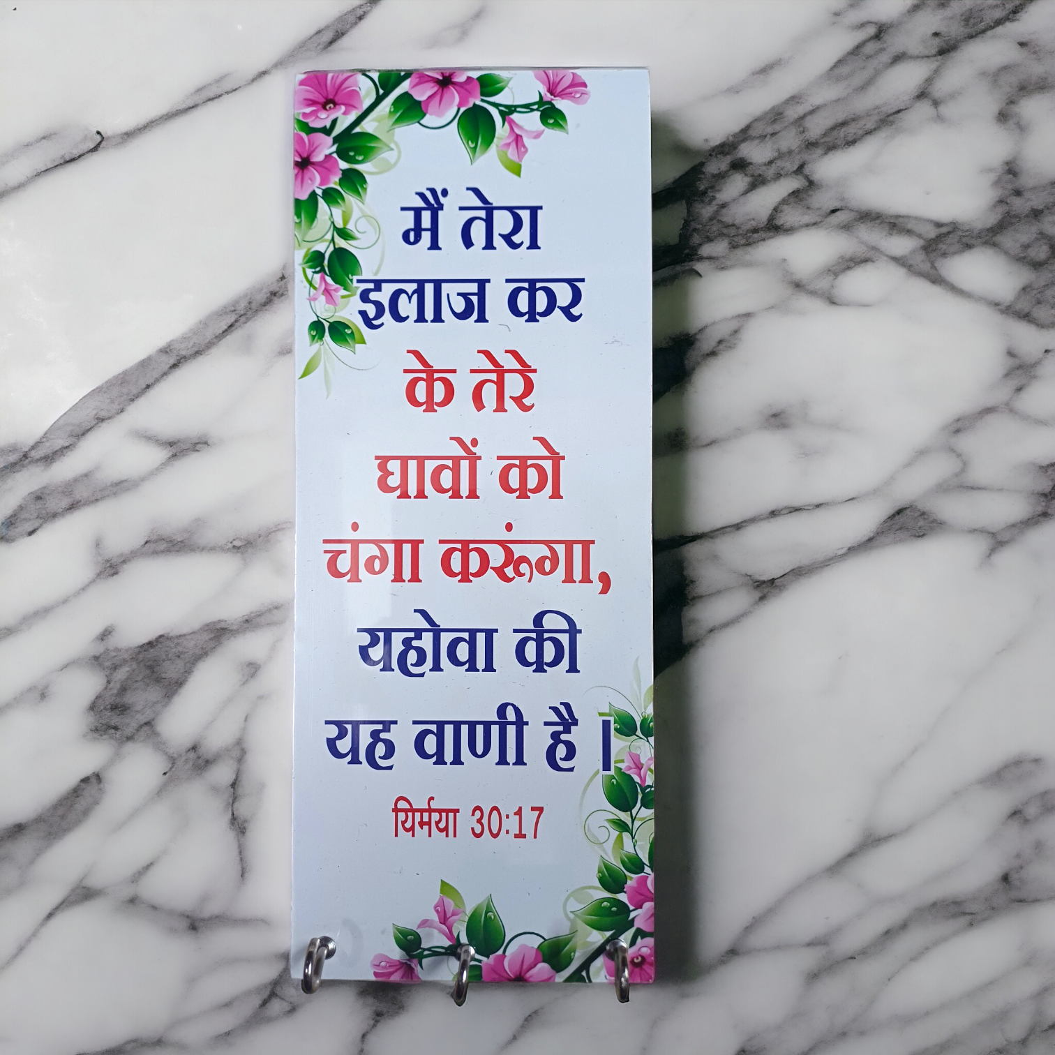 Odun Wood Art Studio Wooden ( Key Holder ) | Key Stand with 3 Hooks | Bible Verse Printed | High Quality