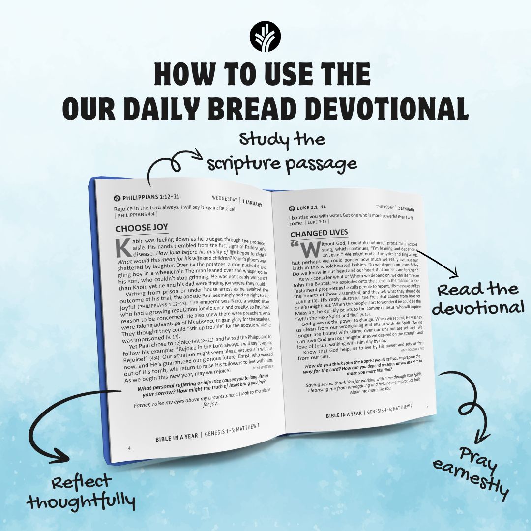 The Our Daily Bread Annual Edition - 2025 is a yearly devotional collection that offers daily insights, reflections, and Scripture readings to inspire and uplift throughout the year. Published by Our Daily Bread Ministries, this annual edition provides a full year of devotionals, helping readers deepen their faith and engage with God’s Word every day.