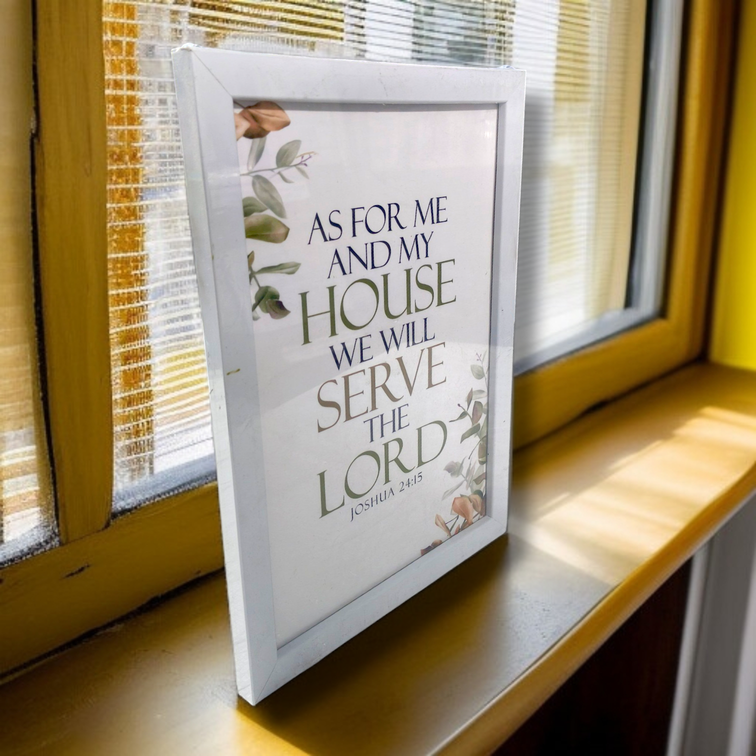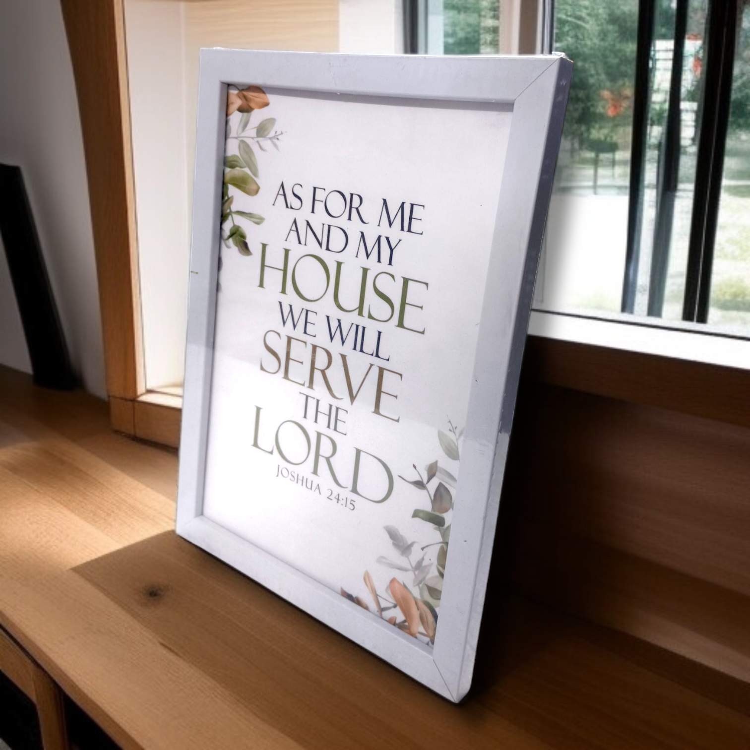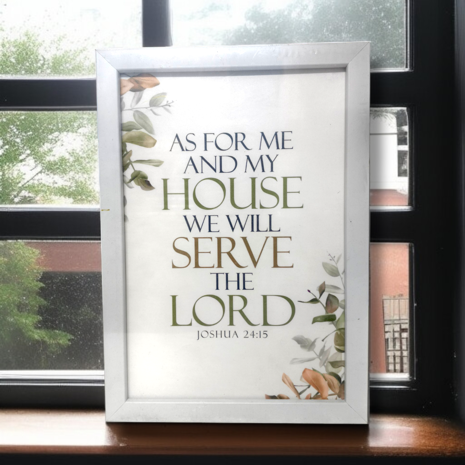 What makes this frame particularly significant is the inclusion of the powerful and resolute verse from Joshua 24:15: "...as for me and my household, we will serve the Lord." This timeless declaration of faith and dedication serves as a constant reminder of your family's spiritual foundation and the values you uphold. Displaying this verse within your home creates an atmosphere of shared belief and purpose, inspiring all who dwell within its walls.
