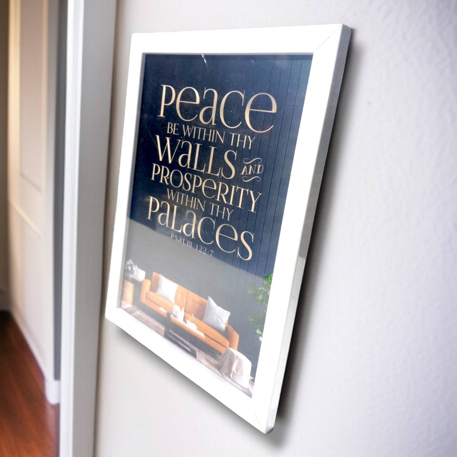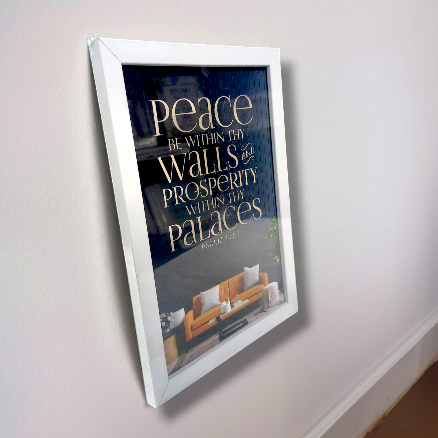 Here's a long description and key points for a high-quality 11-inch x 8-inch photo frame featuring Psalm 122:7, perfect for enhancing home decor and as a meaningful gift: