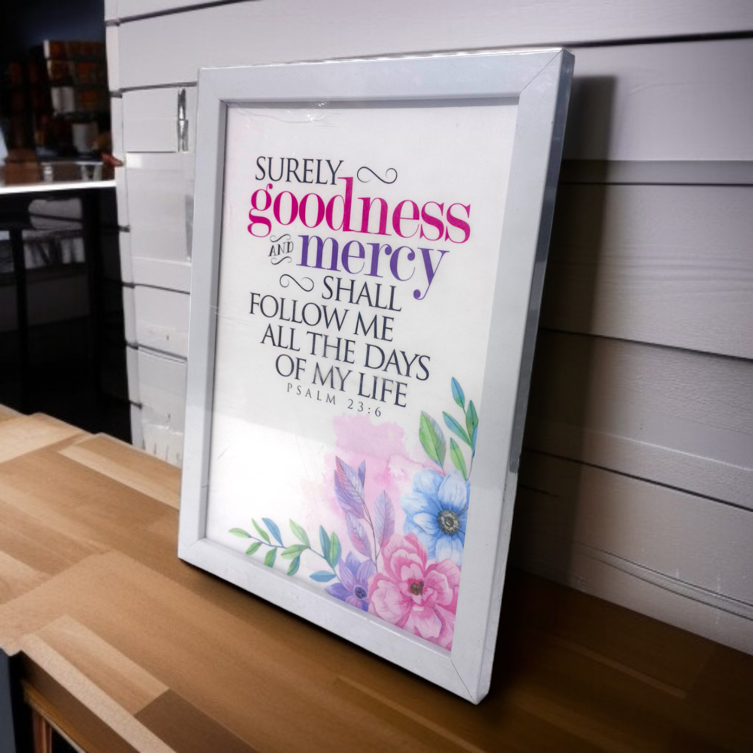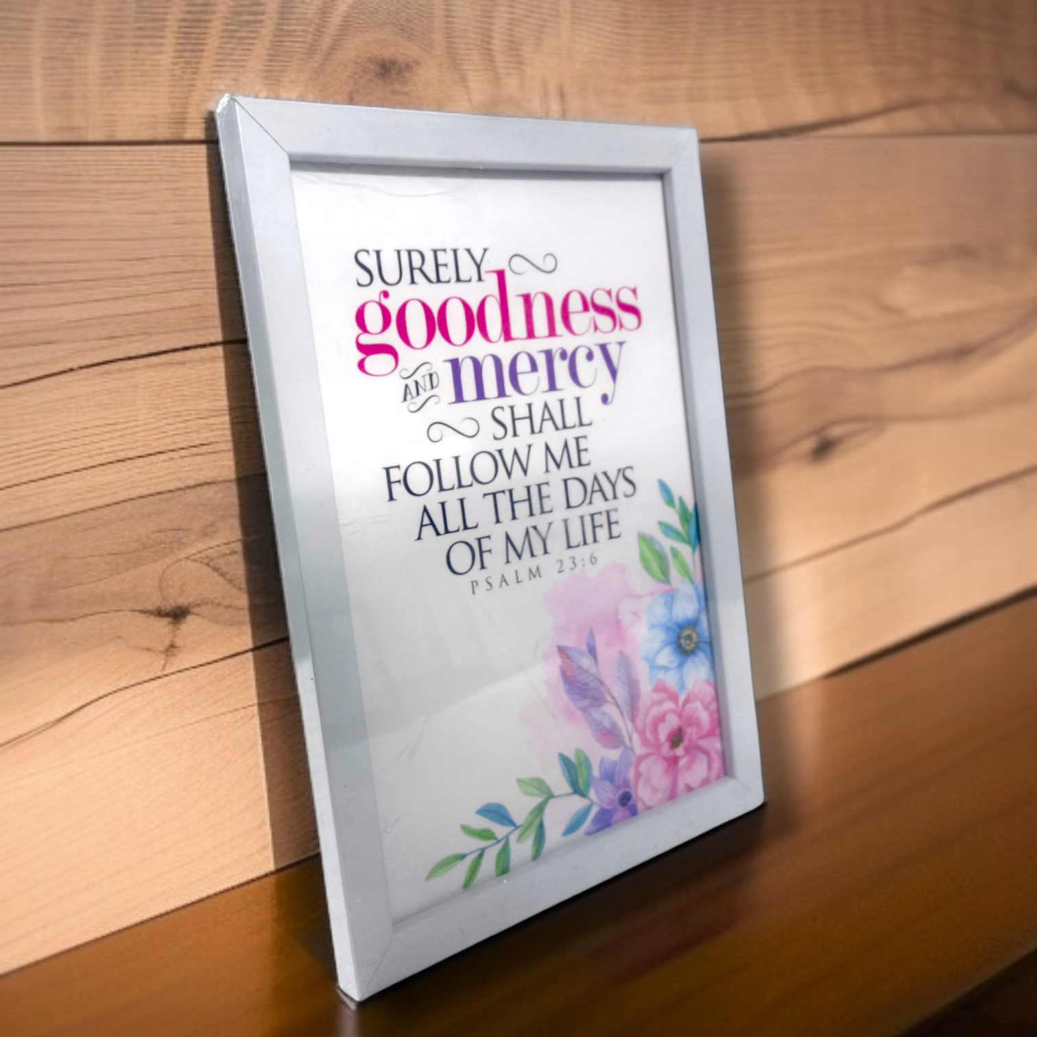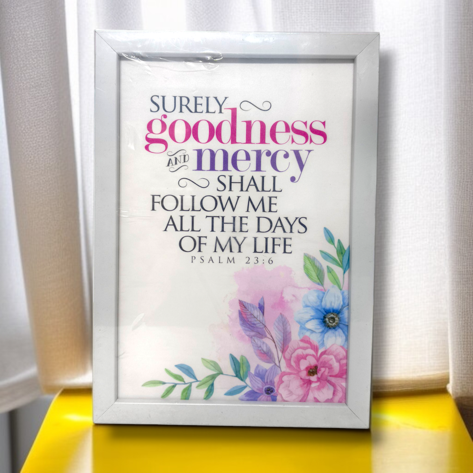 The true essence of this frame lies in the inclusion of the beloved and deeply comforting verse from Psalm 23:6: "Surely goodness and mercy shall follow me all the days of my life, and I shall dwell in the house of the Lord forever." This timeless scripture offers a powerful message of hope, assurance, and divine presence, making this frame more than just a decorative piece. It serves as a daily reminder of blessings and eternal belonging, creating an atmosphere of peace and reflection within your home.