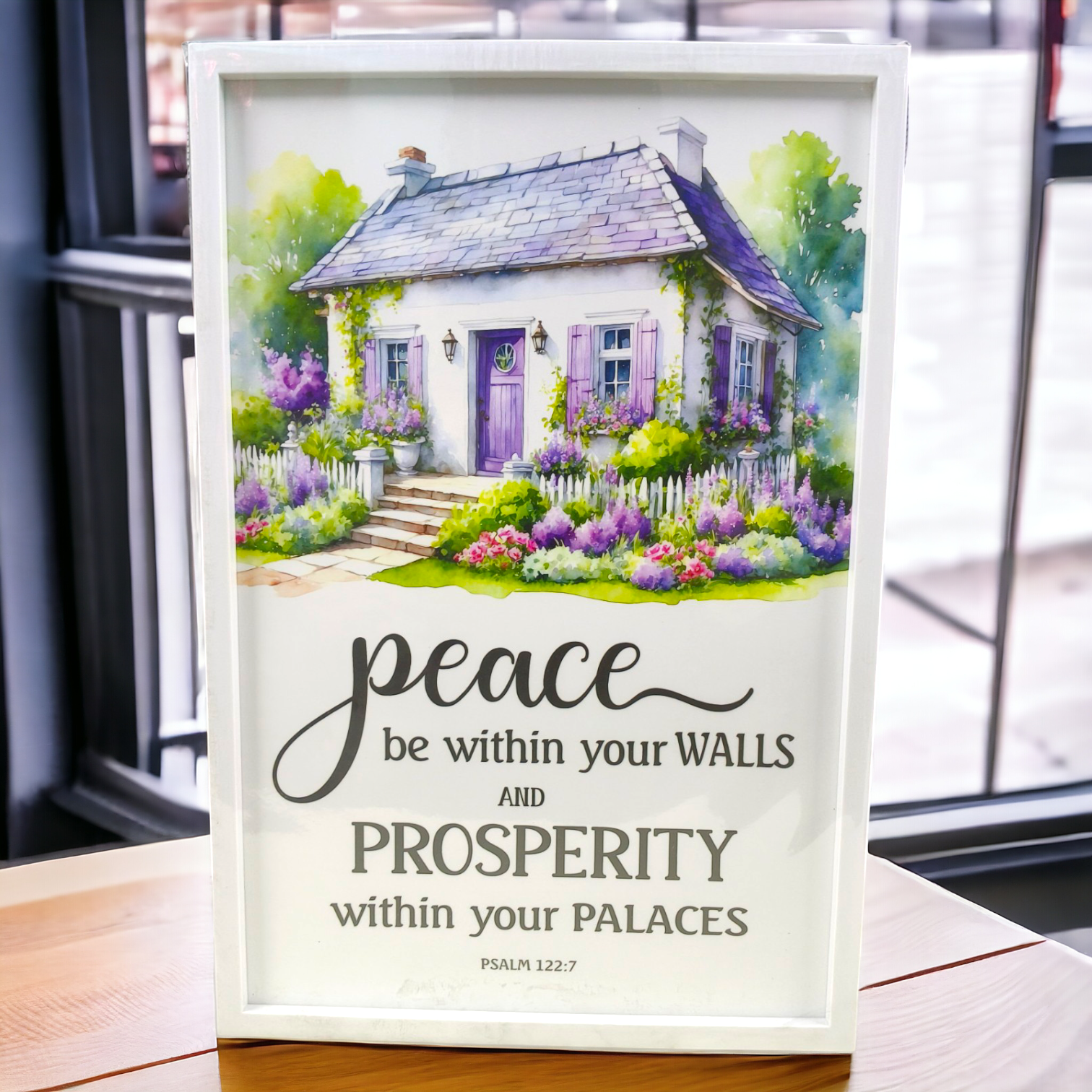 Scripture: Displays the Bible verse Psalms 122:7 from the NKJV (New King James Version): "Peace be within your walls, Prosperity within your palaces."