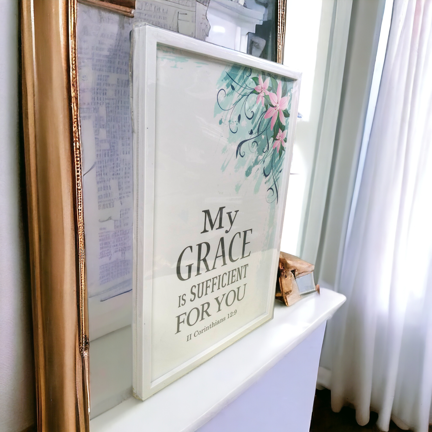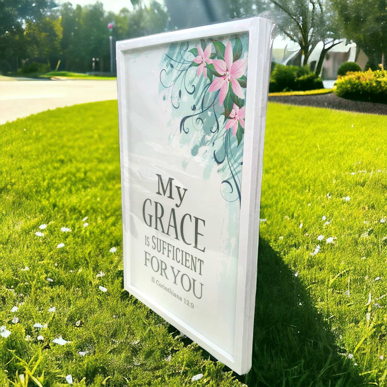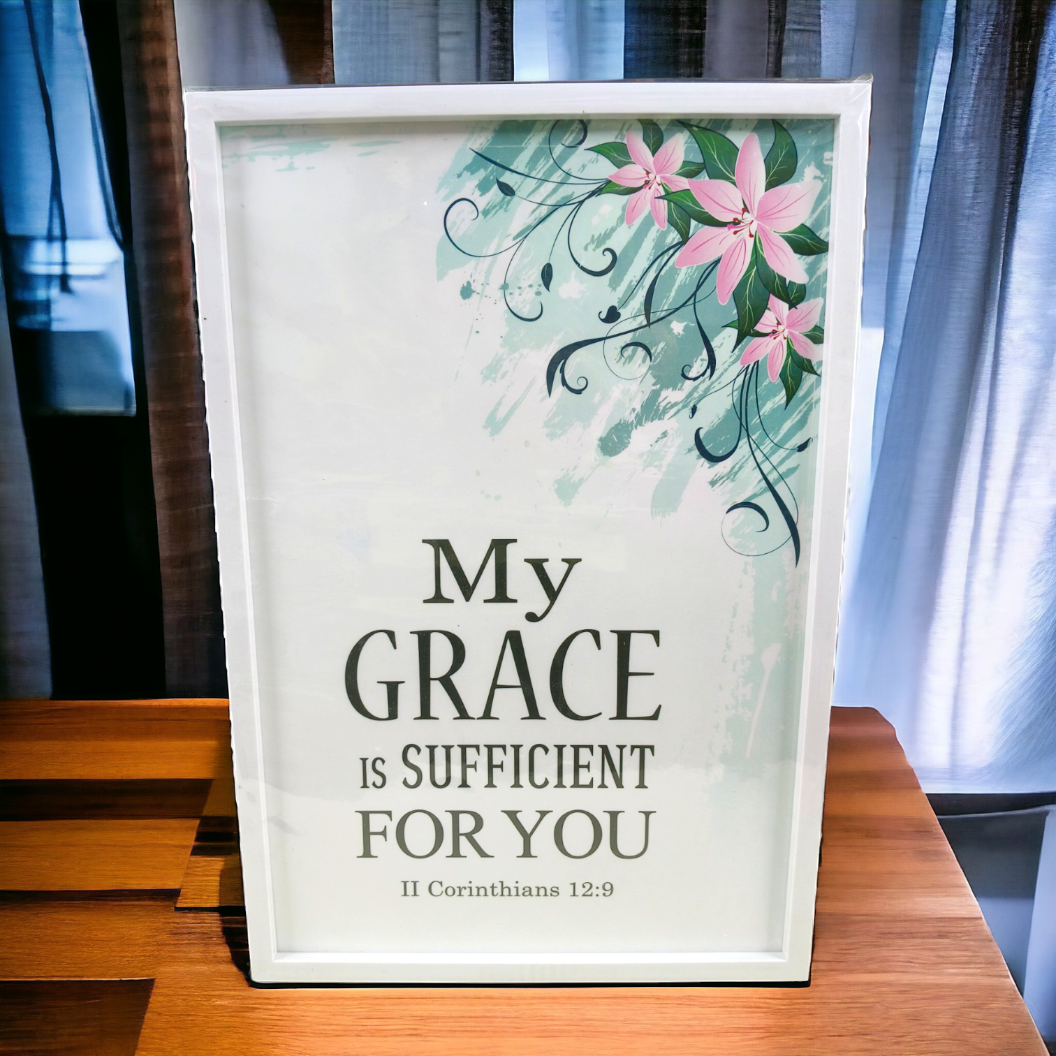 Premium English Bible Verses Photo Frame | Hanging Frame | High Quality | Best Gift For Home Decor | 2 Corinthians 12:9 | 13 inch × 19 inch