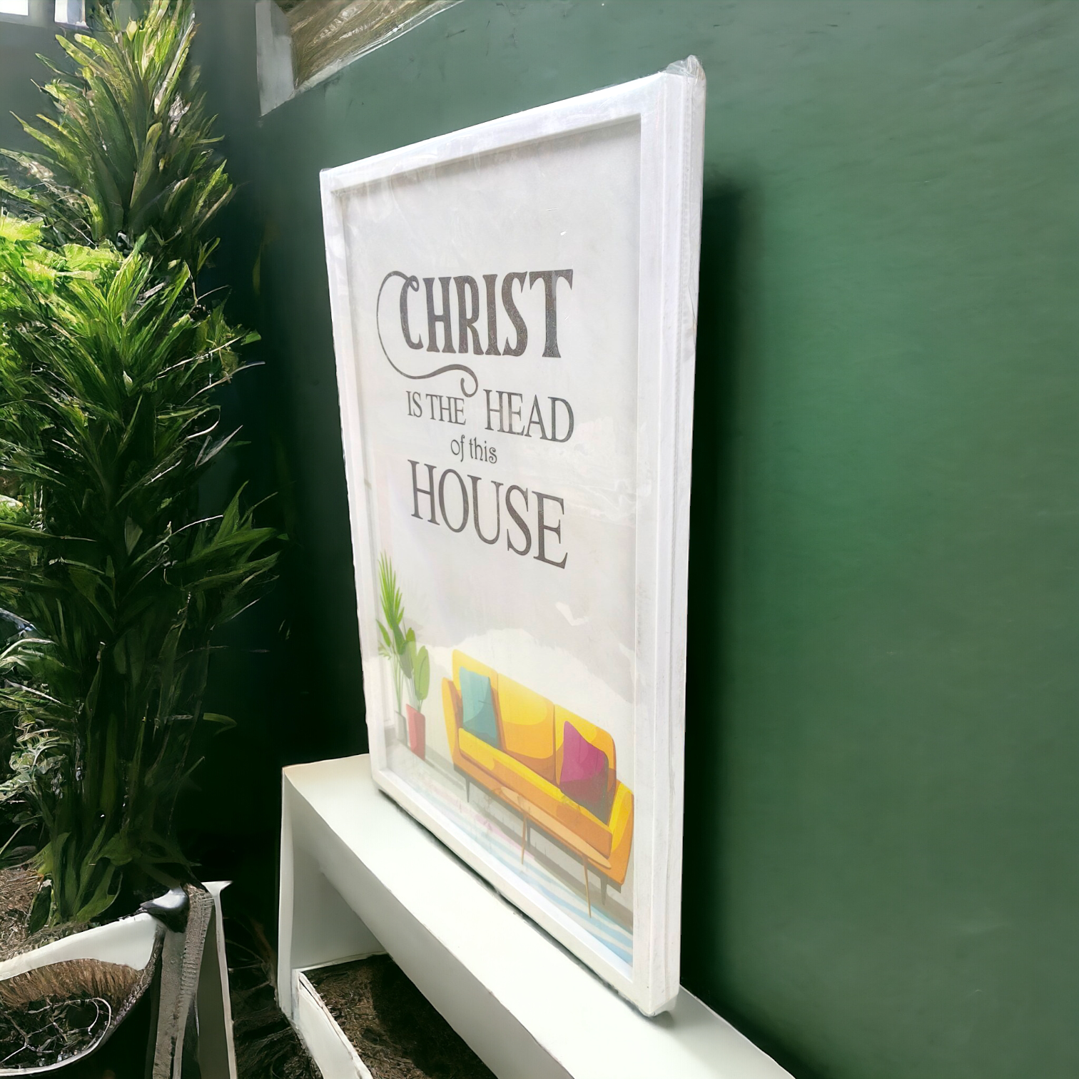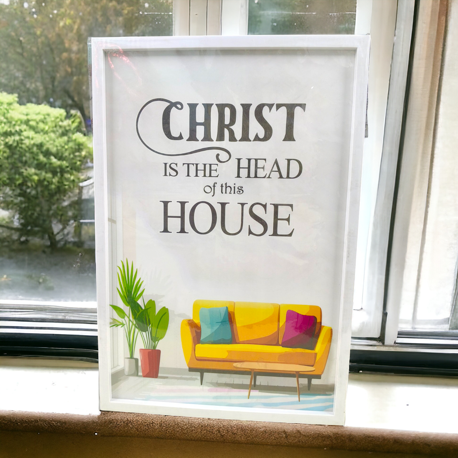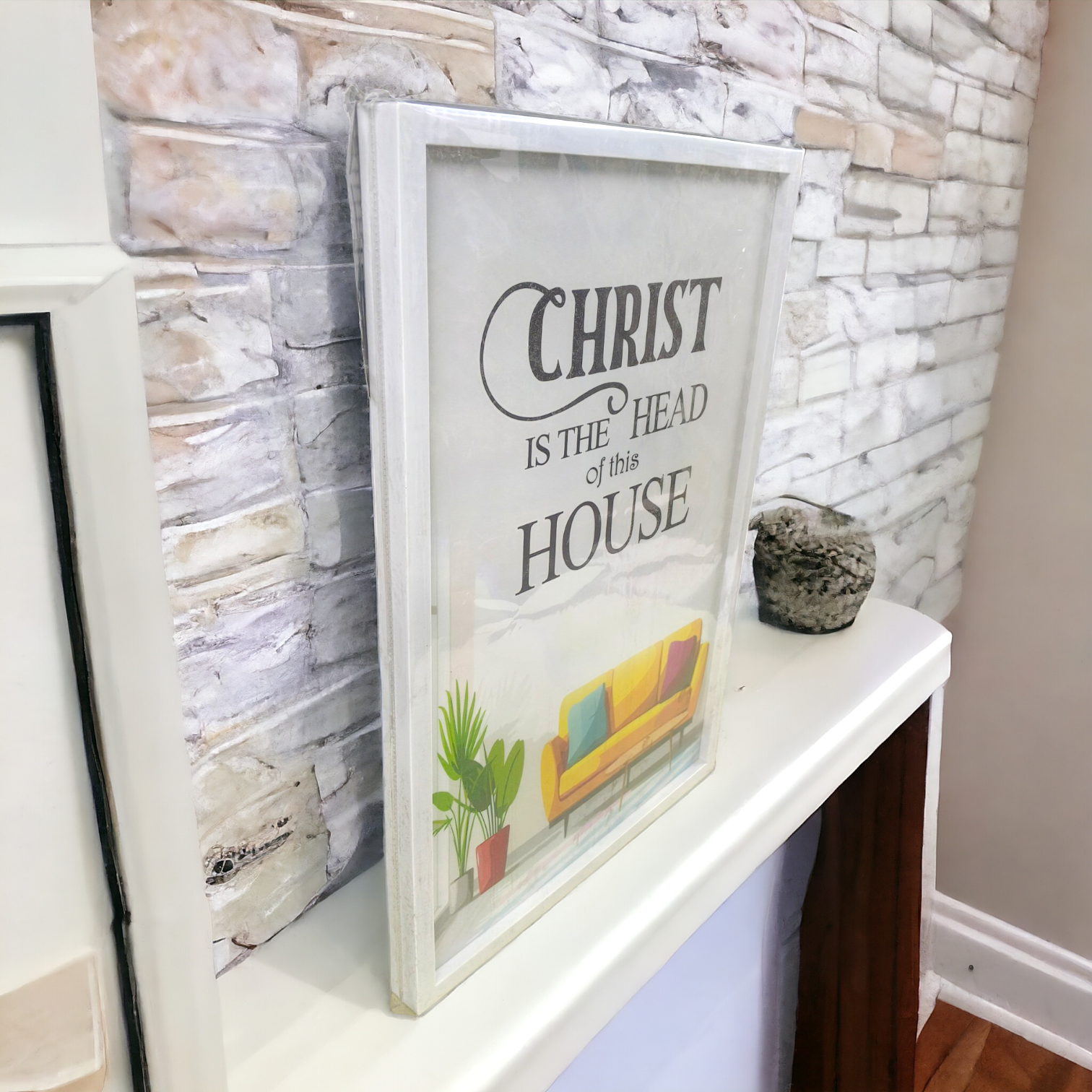 Scripture: Features the phrase "Christ is the Head of the House", a powerful reminder of Christ's leadership and presence in the home.