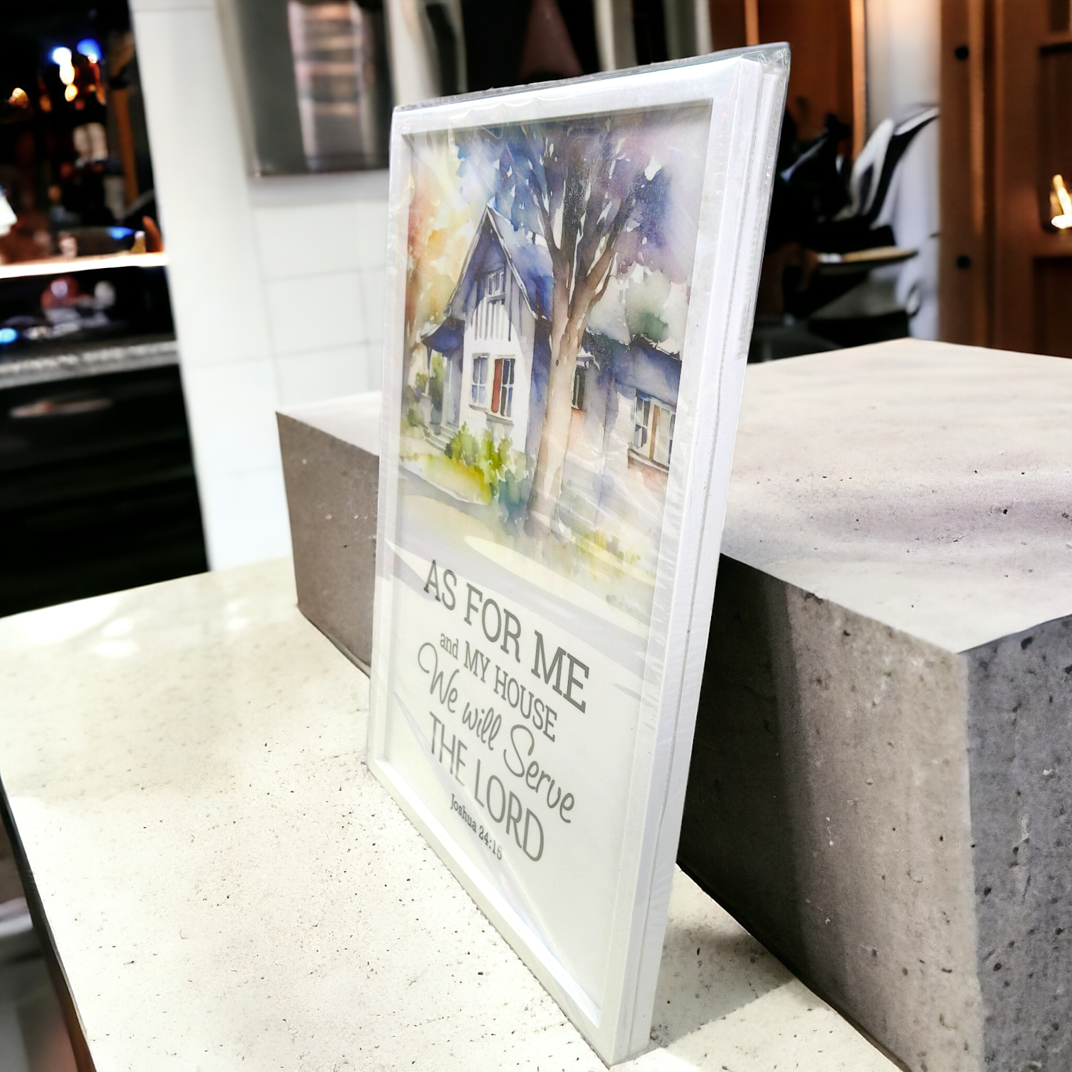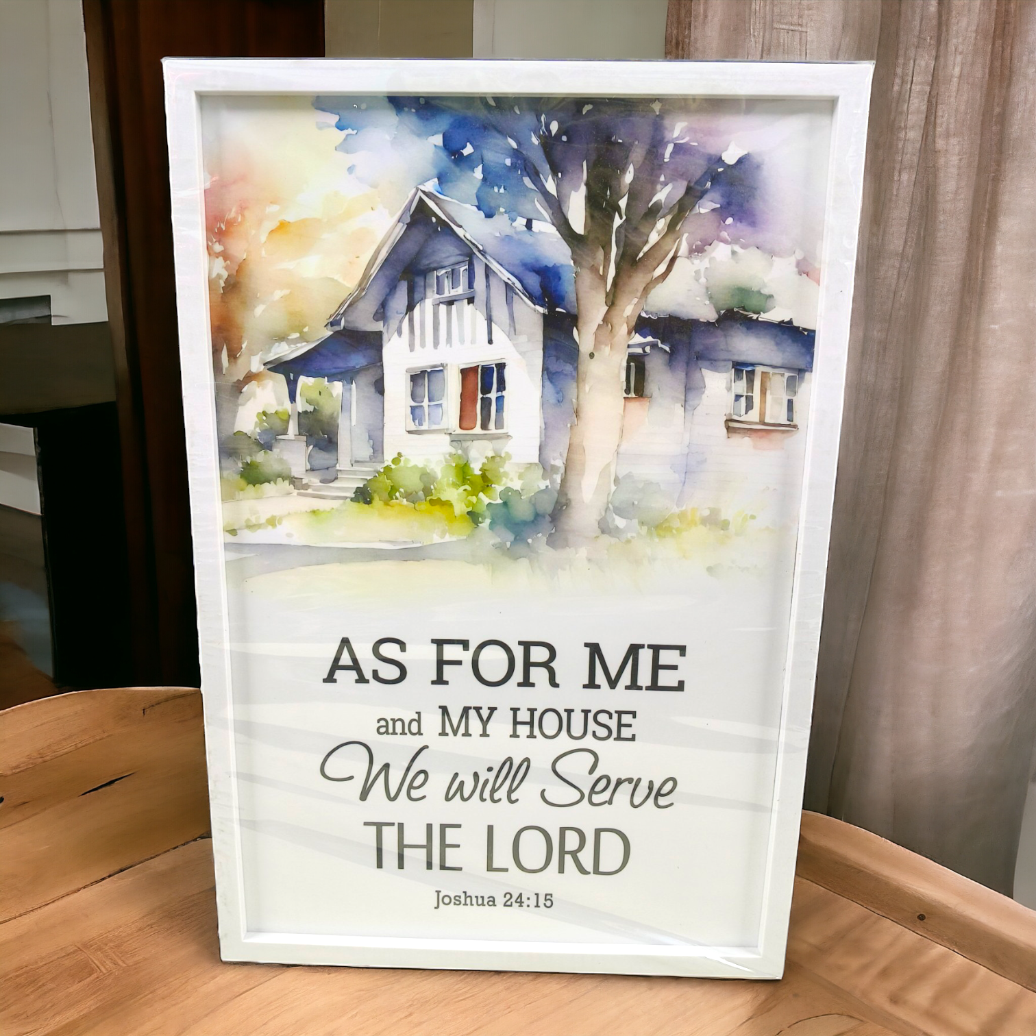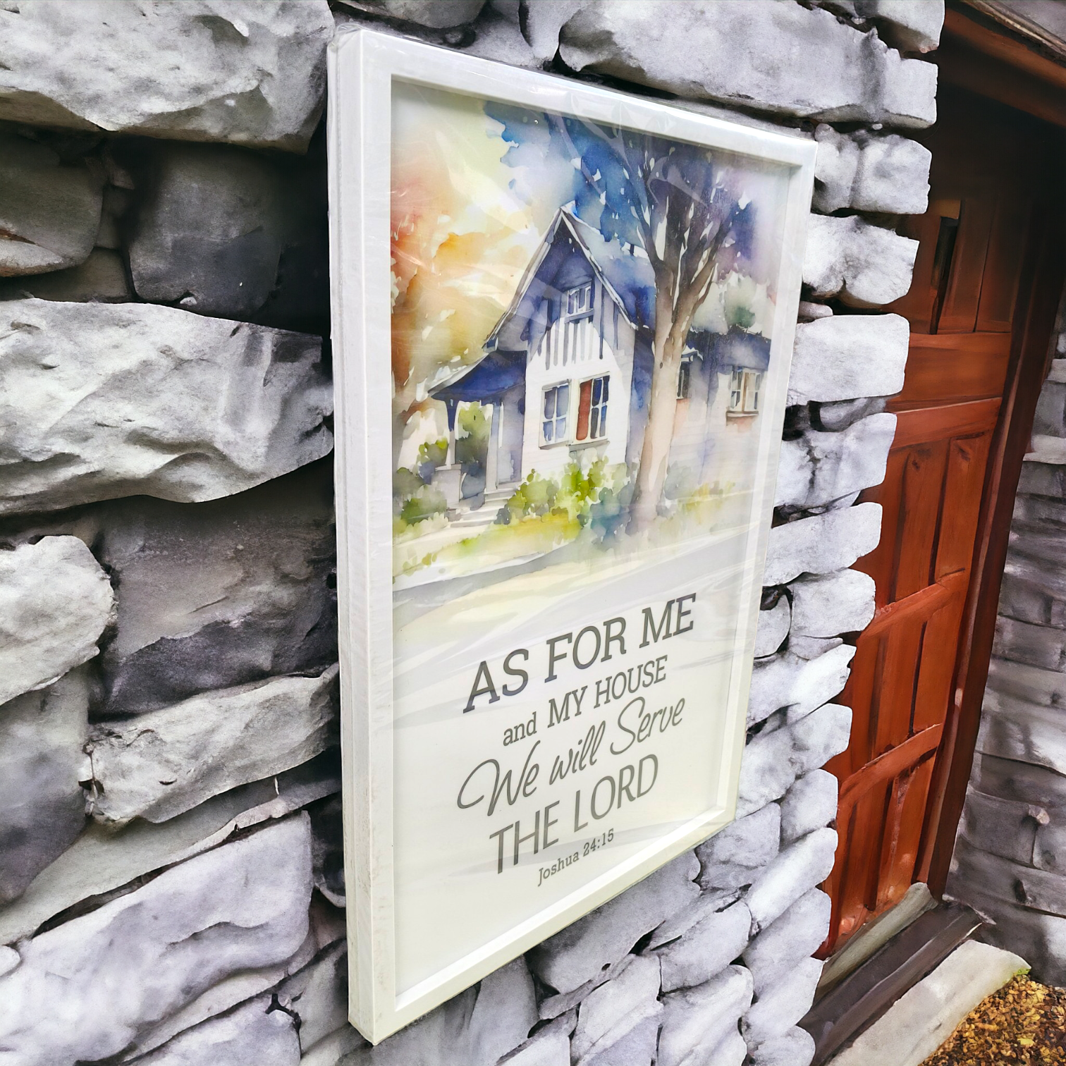 Scripture: Displays the Bible verse Joshua 24:15 from the NKJV (New King James Version): "But as for me and my house, we will serve the Lord."