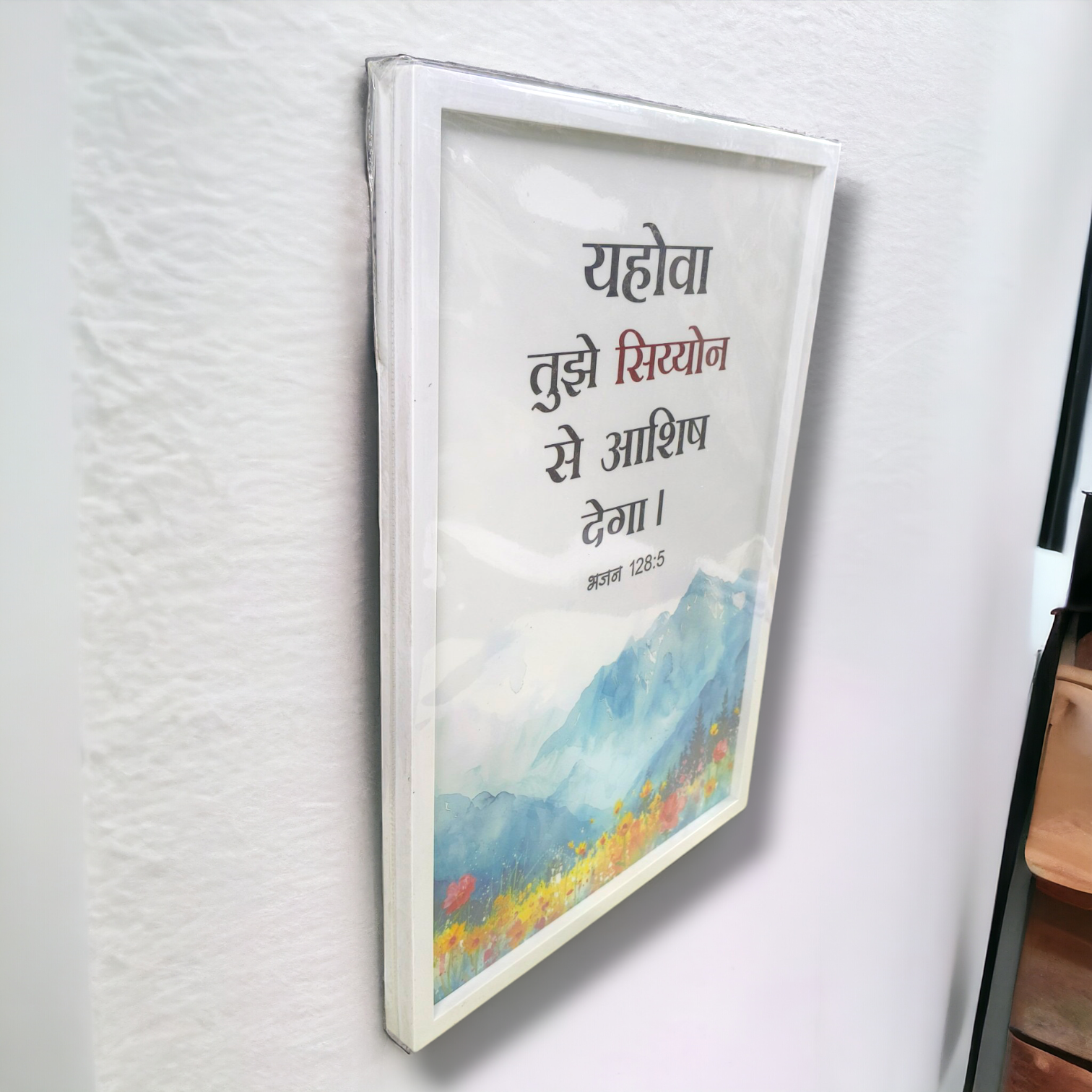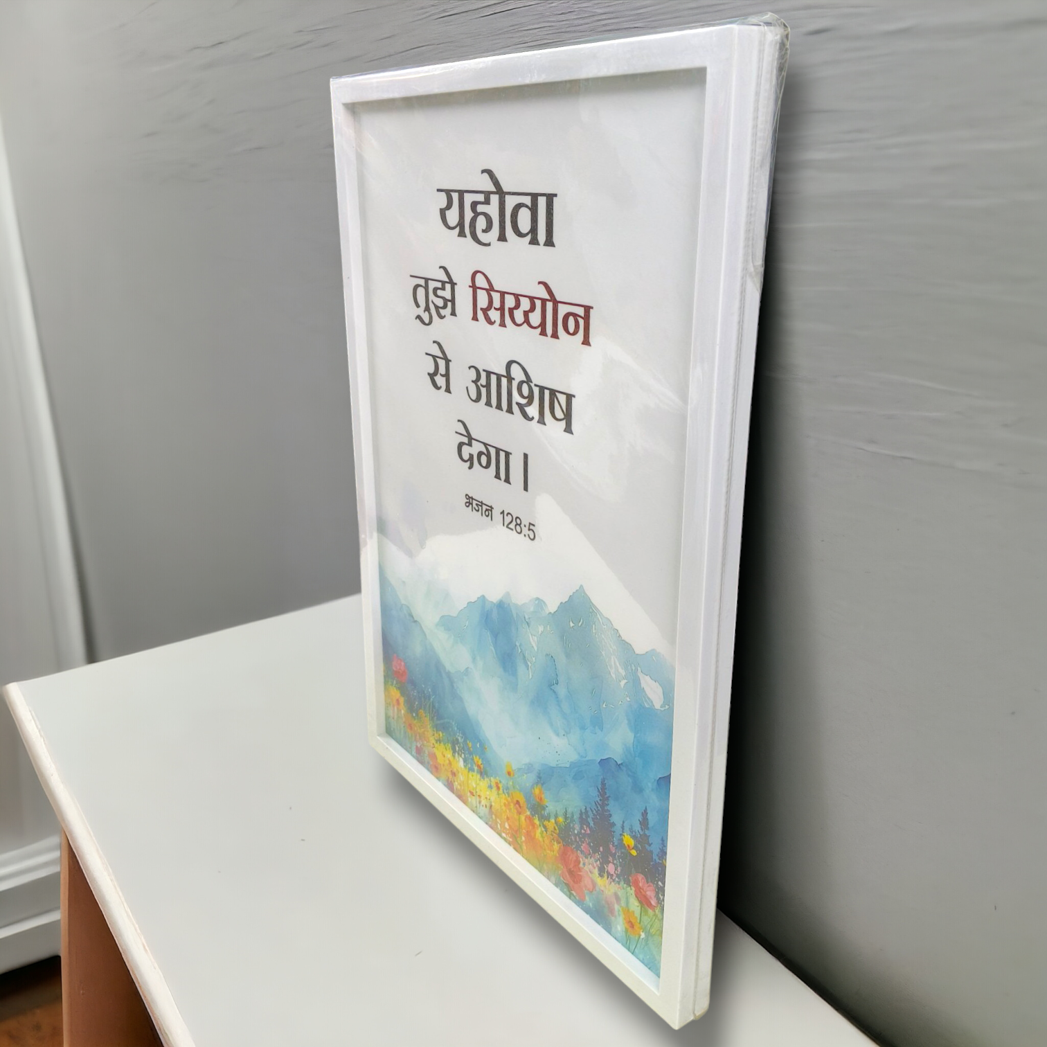 Premium Hindi Bible Verses Photo Frame | Hanging Frame | High Quality | Best Gift For Home Decor | भजन संहिता 128:5 | 13 inch × 19 inch