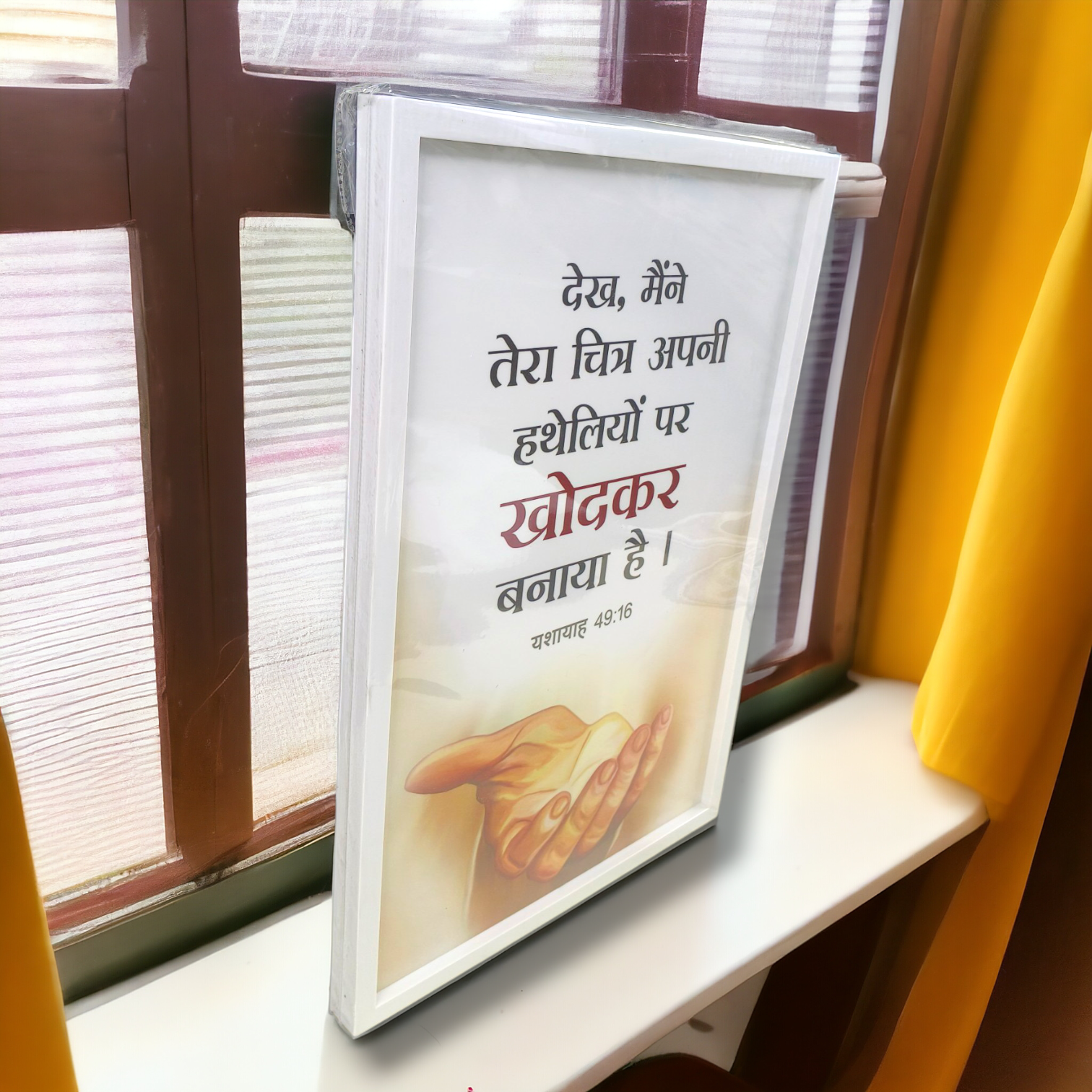 Premium Hindi Bible Verses Photo Frame | Hanging Frame | High Quality | Best Gift For Home Decor | यशायाह 49:16 | 13 inch × 19 inch