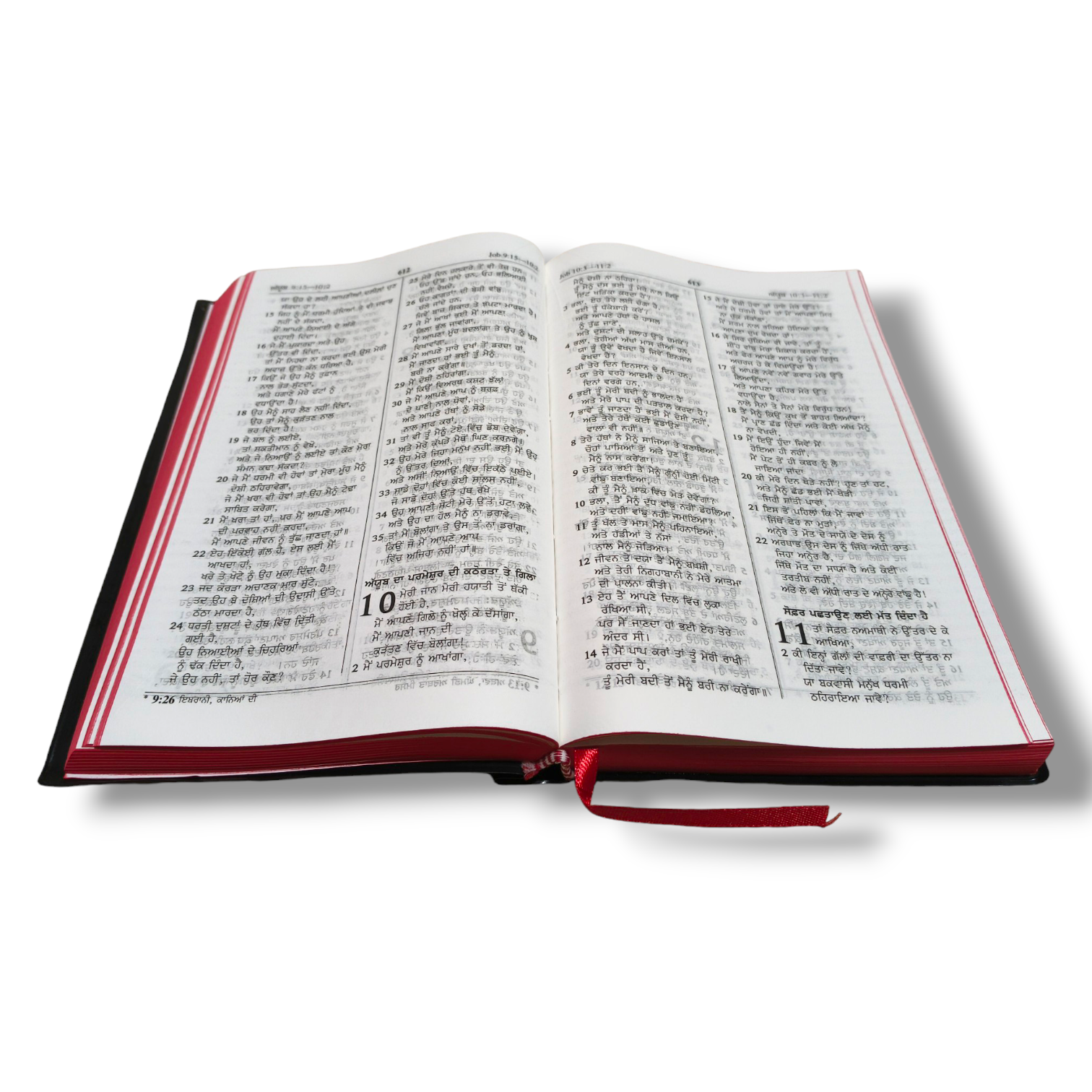 Description: The Punjabi Holy Bible in medium size is a thoughtfully crafted edition for Punjabi-speaking readers who desire a complete, portable Bible. Featuring red-edged pages, this Bible has a unique and elegant look. Its normal size makes it convenient to carry and comfortable to read. This new edition includes updated language, offering a clearer and more accessible experience for readers today.