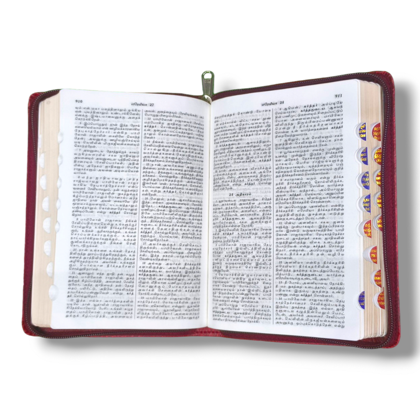 The "Tamil Bible with Thumb Index | Red Color Cover with Zip | New Edition | Compact Size" is more than just a Bible; it's a stylish and portable companion for Tamil readers. Whether you're a dedicated reader, a student, or someone seeking a visually appealing and convenient Tamil Bible, this edition is crafted to enhance your spiritual journey.